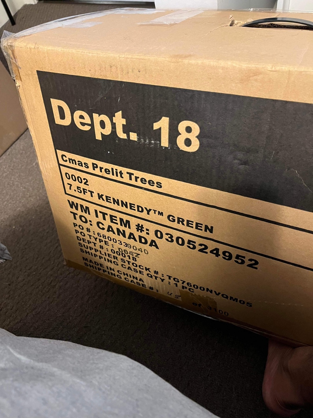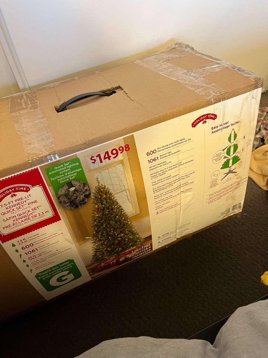 Like New 7.5ft pre-lit Christmas tree. Lights are multicoloured. Separates into three (3) sections for east storage. Easy to assemble. Stand included.