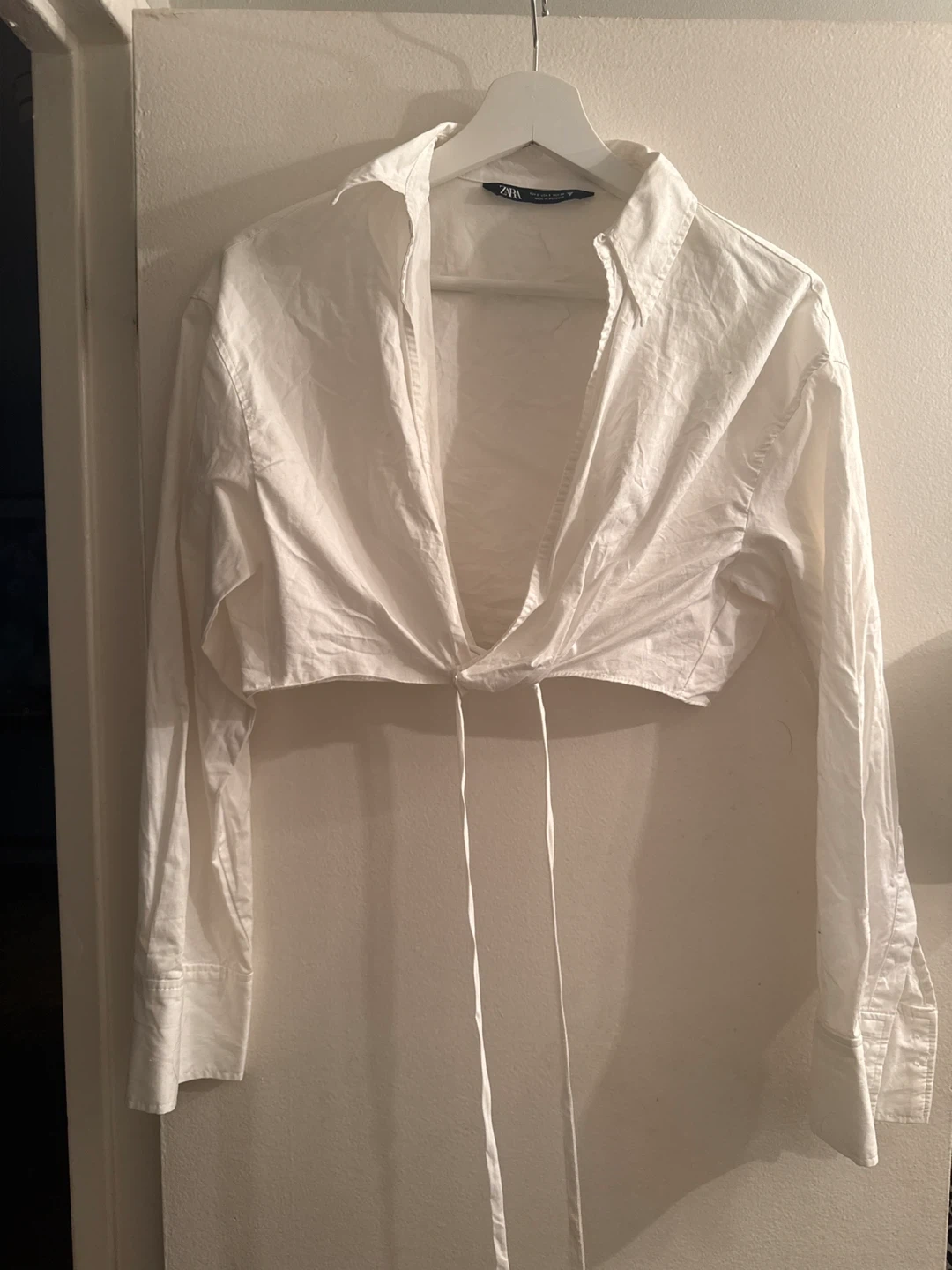 Selling a cute Zara white tie-front blouse in size small! It's in great condition and perfect for layering or wearing on its own. The material is nice and light