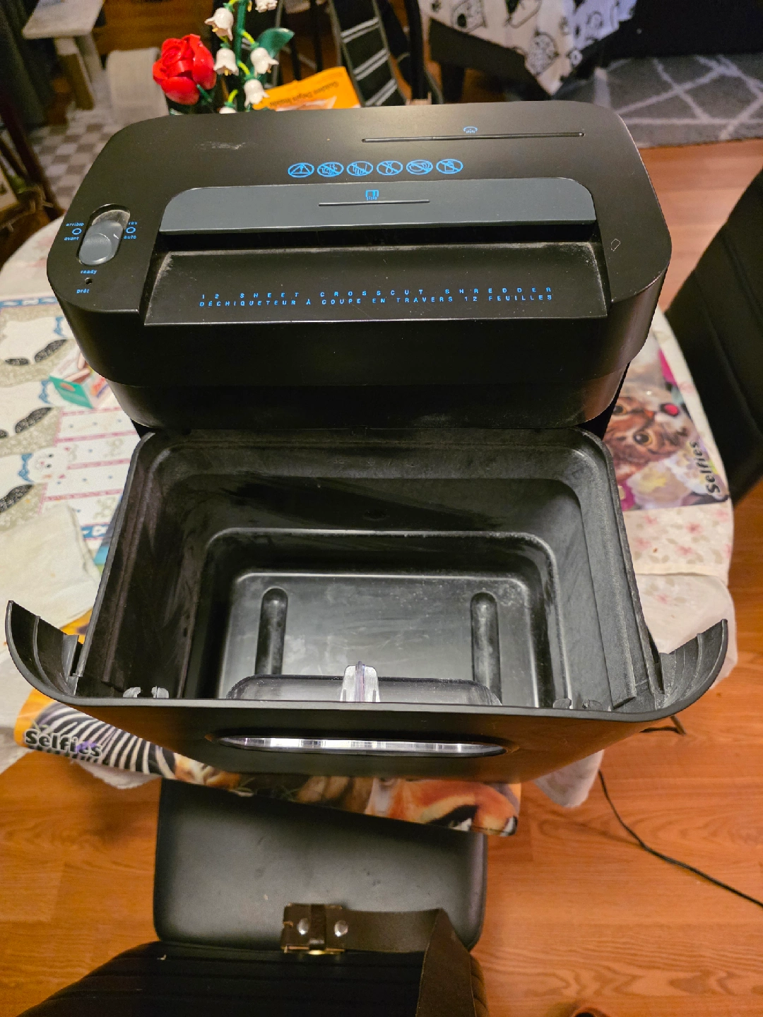 Selling a handy cross-cut paper shredder! It shreds up to 12 sheets at a time. Perfect for getting rid of sensitive documents safely and easily