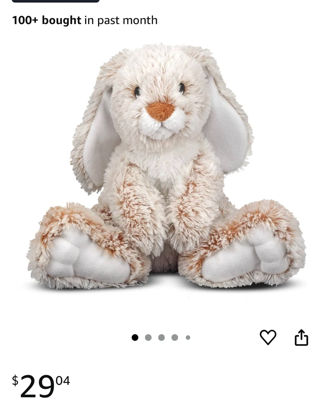 Selling a gently used Bunny plush stuffed animal. It's in great condition and super cuddly! Originally bought for $29.04.