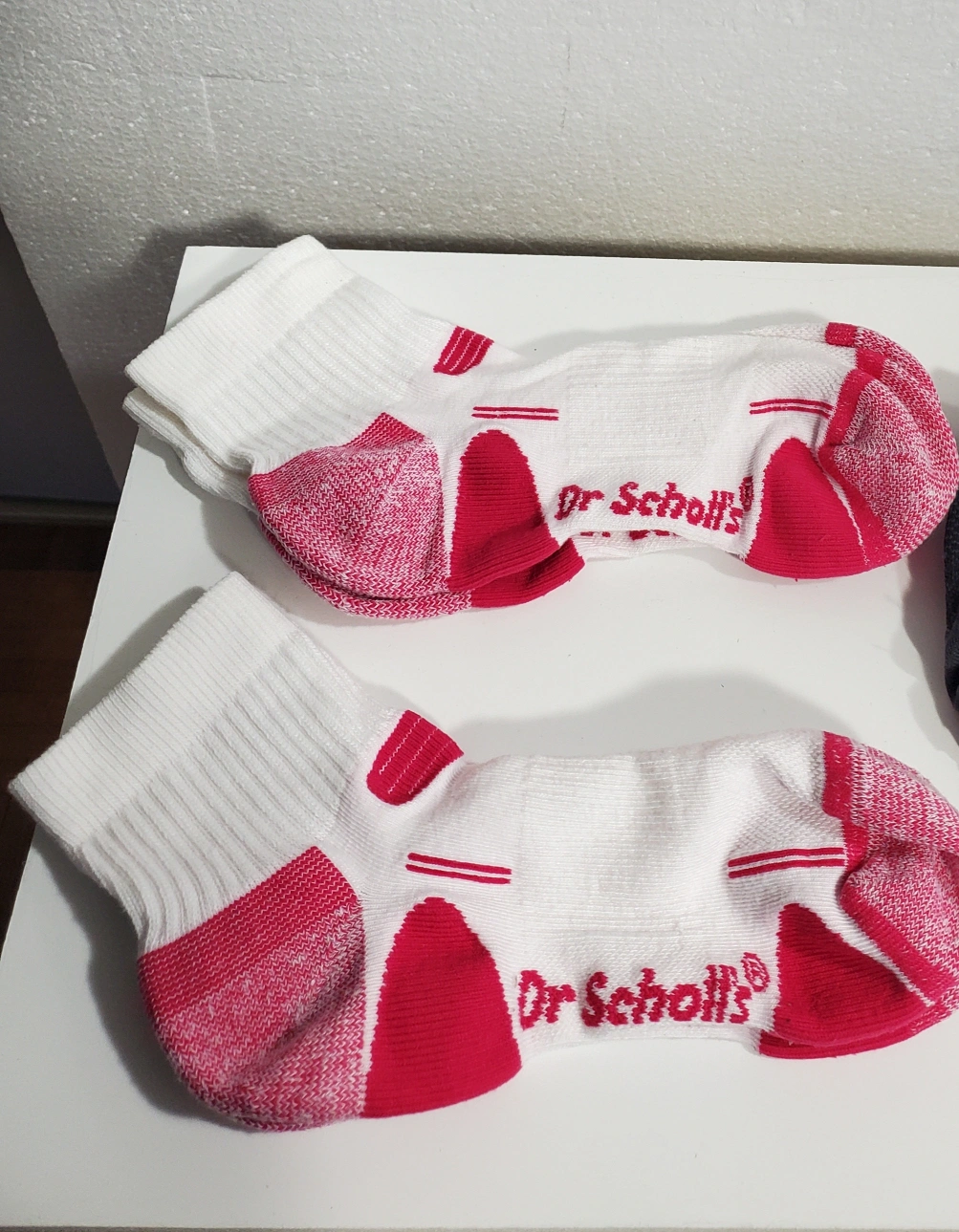Giving away 2 pairs of Dr. Scholl's socks in white and red! They're in good condition.Washed a few times.
