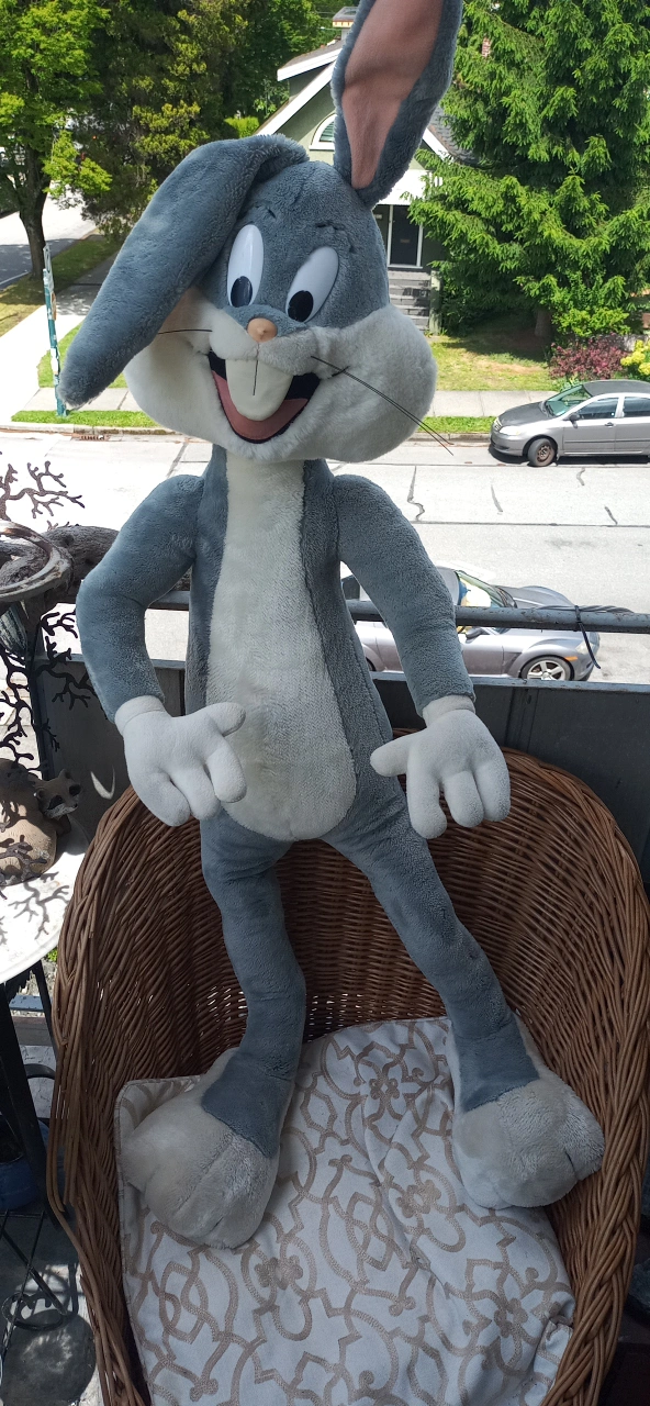 Selling a large Bugs Bunny plush toy! It's in great condition and ready for a new home. Perfect for any Looney Tunes fan or as a fun addition to a kid's room. Flexible arms and legs. Over 4ft. tall. great condition! Window display Looney Toons character. Not just a stuffed animal. Walt Disney Company.