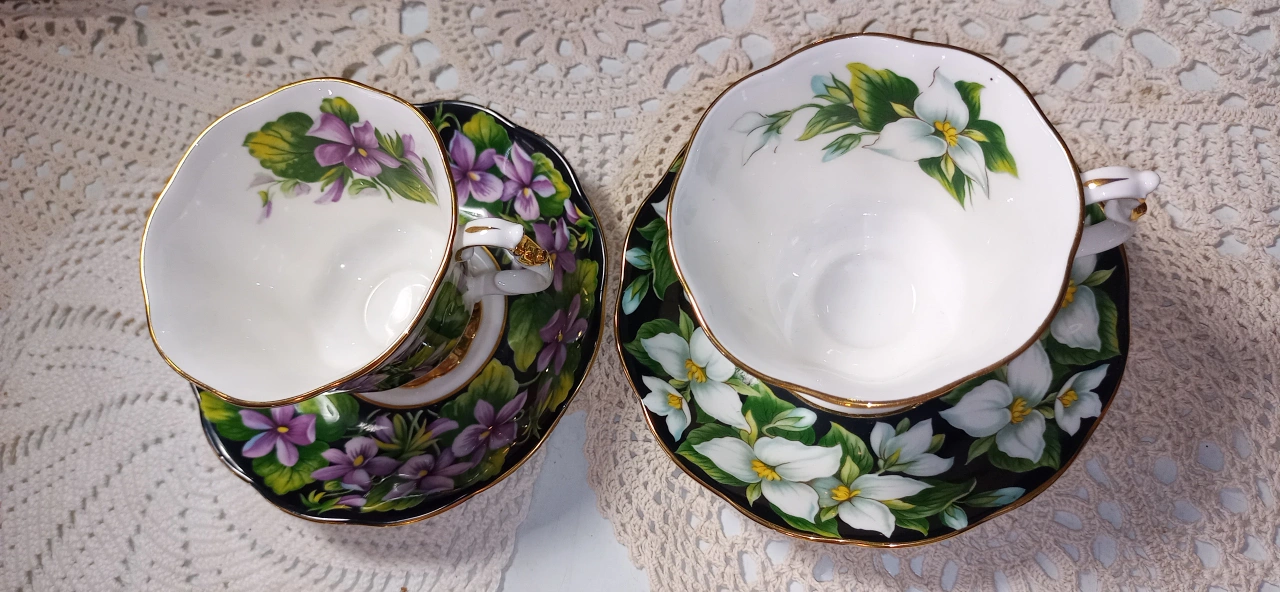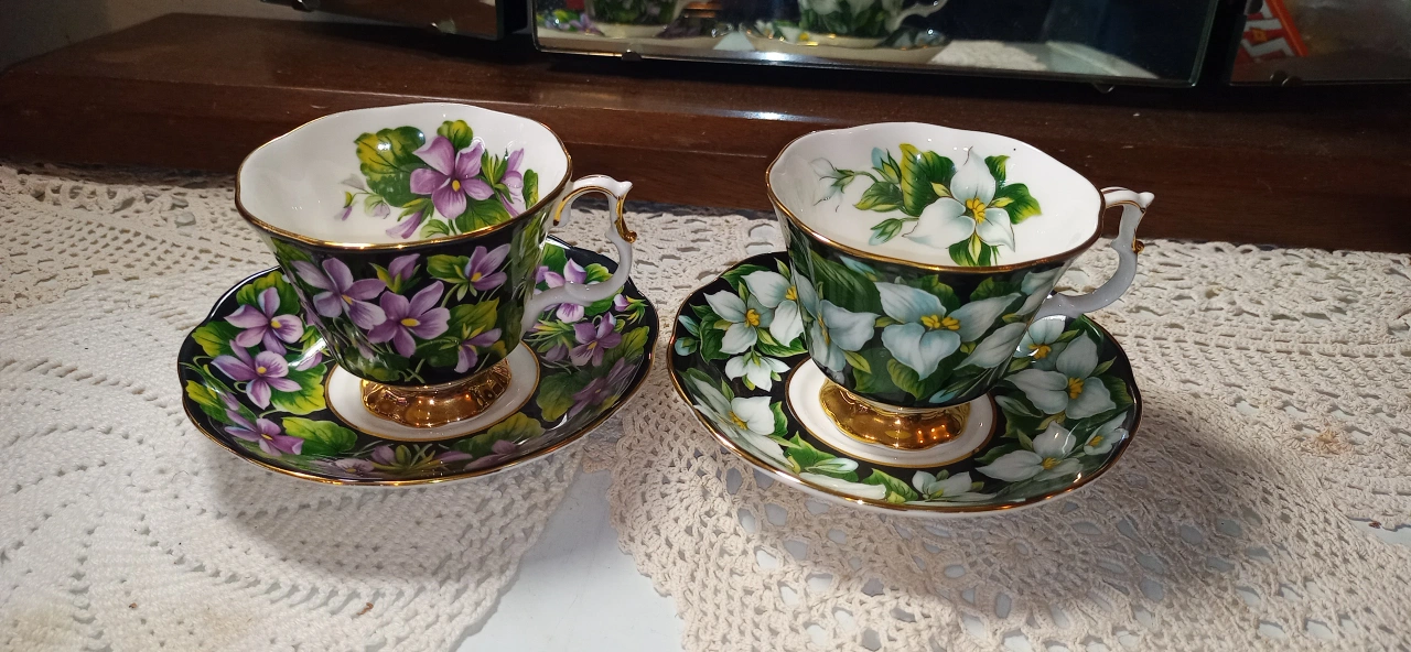 109Here's a lovely set of Royal Albert teacups and saucers! One features the Provincial Flower Trillium and the other features the Provincial Flower Purple Violet. Both are in like new shape and would make a beautiful addition to any collection. $20 each or both for $35. Have others too if interested. thanks Jim