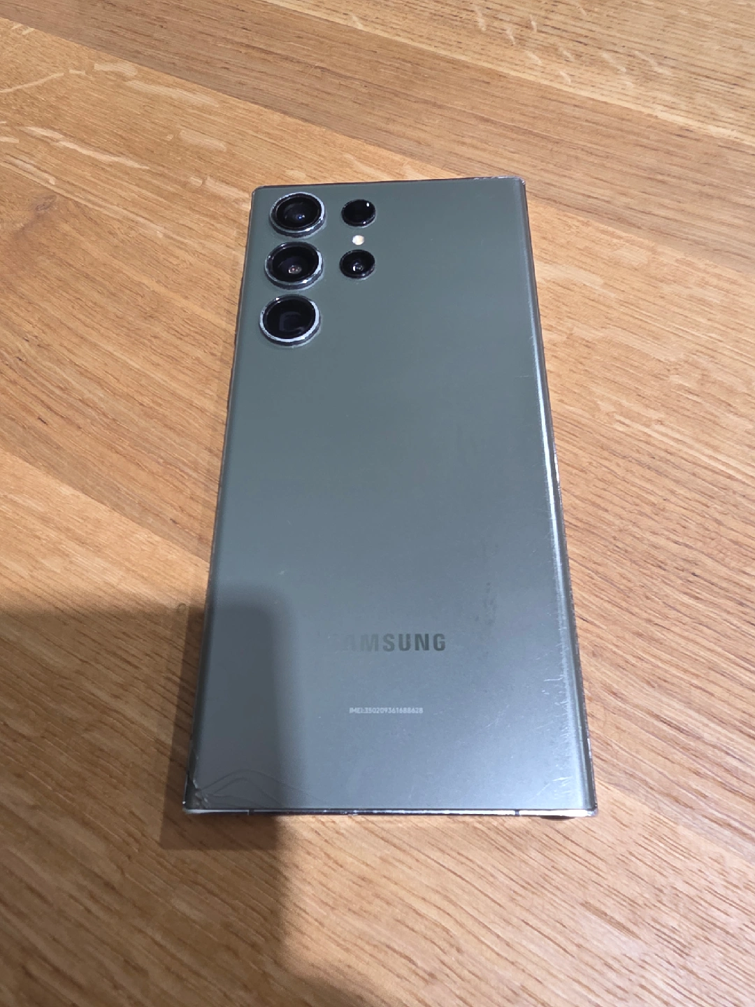272Selling a Samsung Galaxy S23 Ultra in green. Hairline crack in screen and some scratches on back corner of camera side.