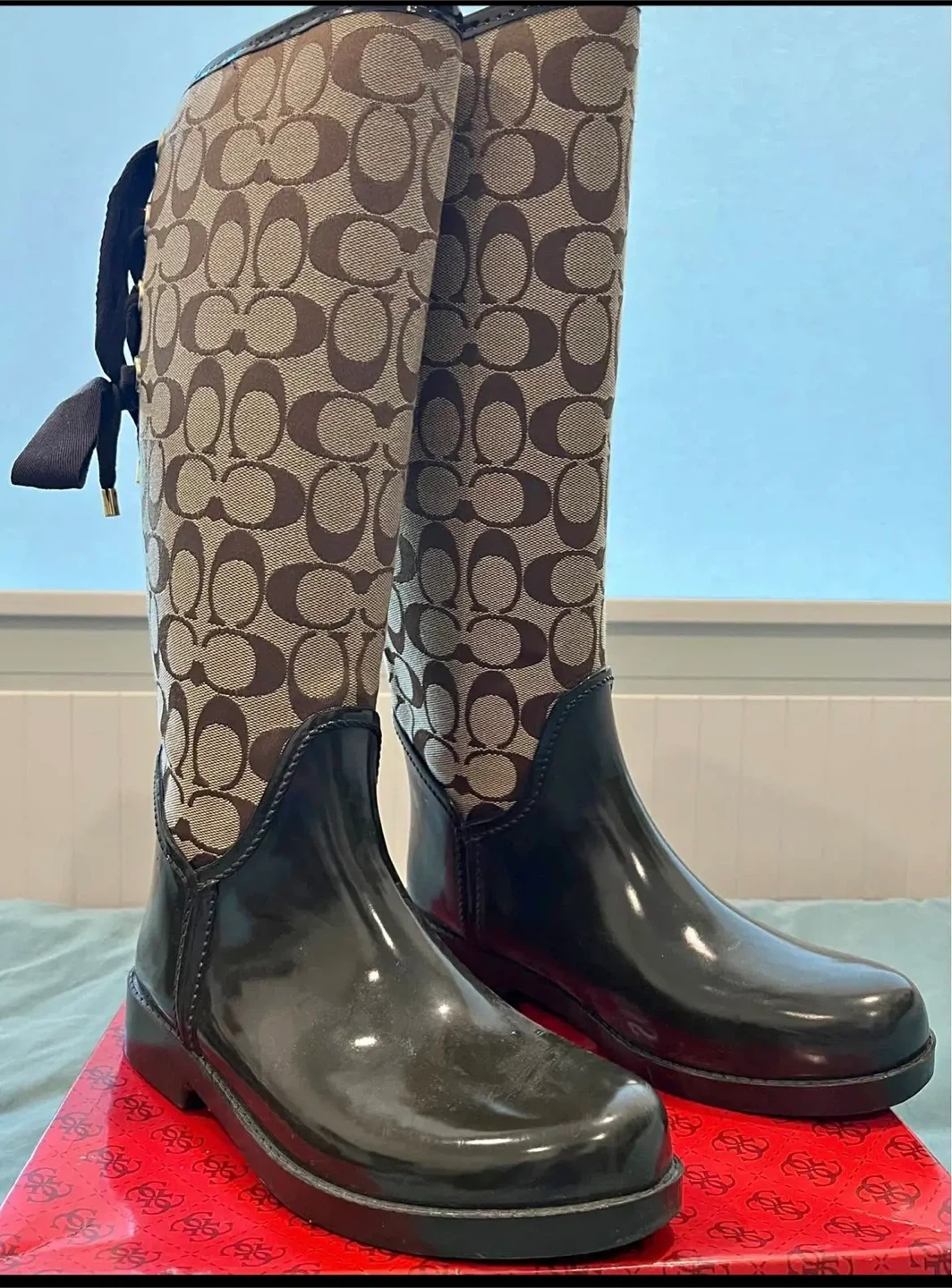 Cute Coach rain boots in excellent condition! They feature the classic Coach logo pattern. Size 6.
