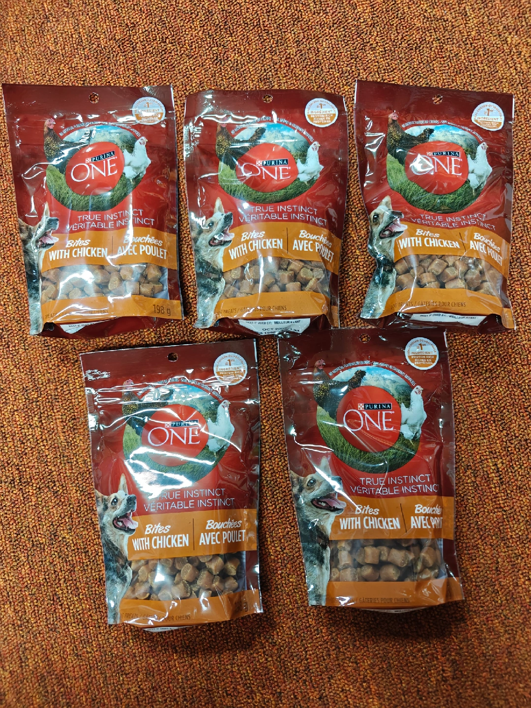 Brand new and never opened before Expiry date Oct 2025 1 bag for $3 or all 5 bags for $10 Great for training treats Low calories Meetup at my location (by Warden Ave and Steeles Ave in Markham) and cash only