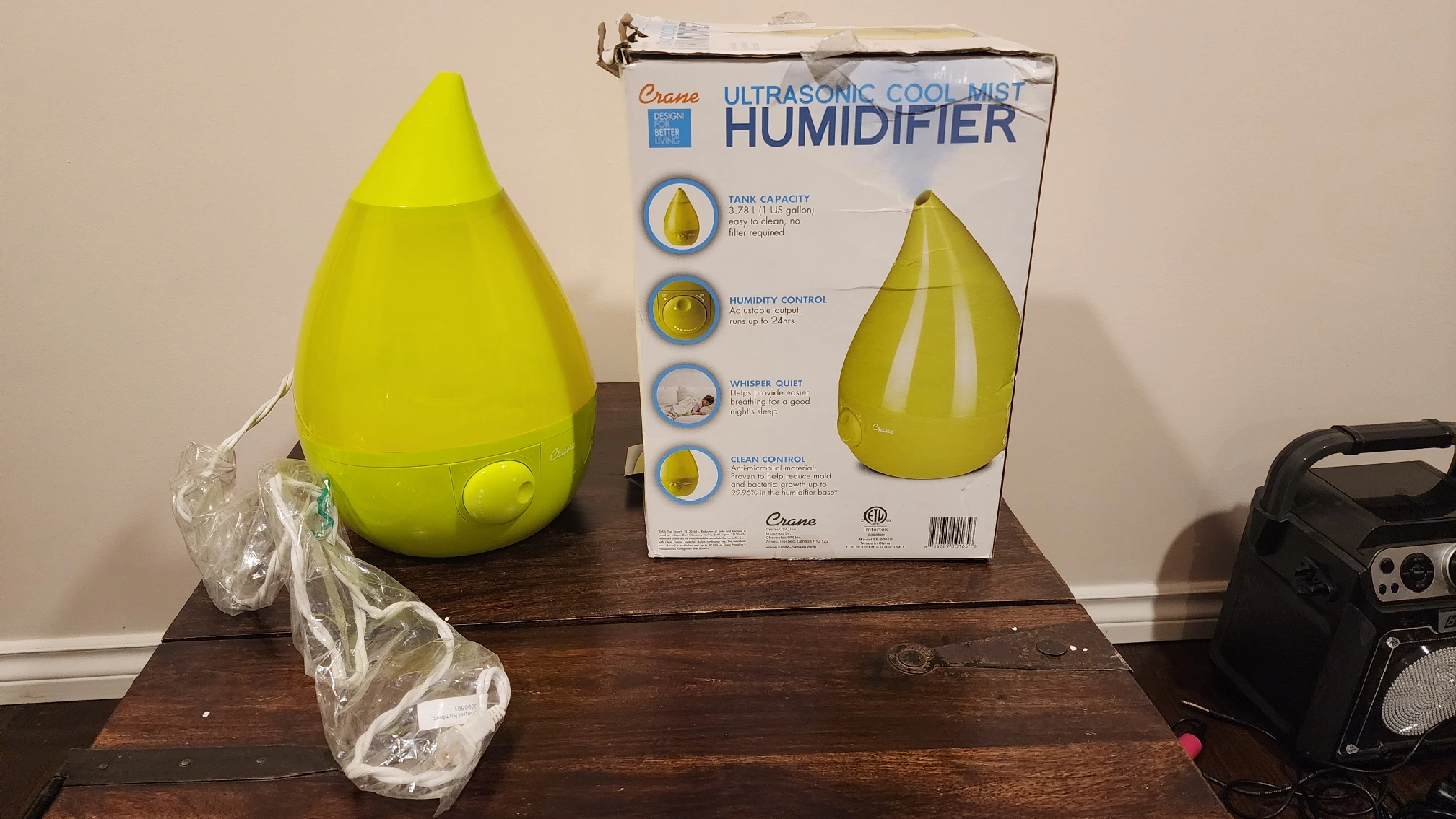 Selling a Crane Ultrasonic Cool Mist Humidifier in a vibrant green colour! It has a 3.78 L (1 gallon) tank capacity, perfect for keeping the air moist and comfortable. The humidifier also features humidity control and operates whisper quiet. It comes with the original box!