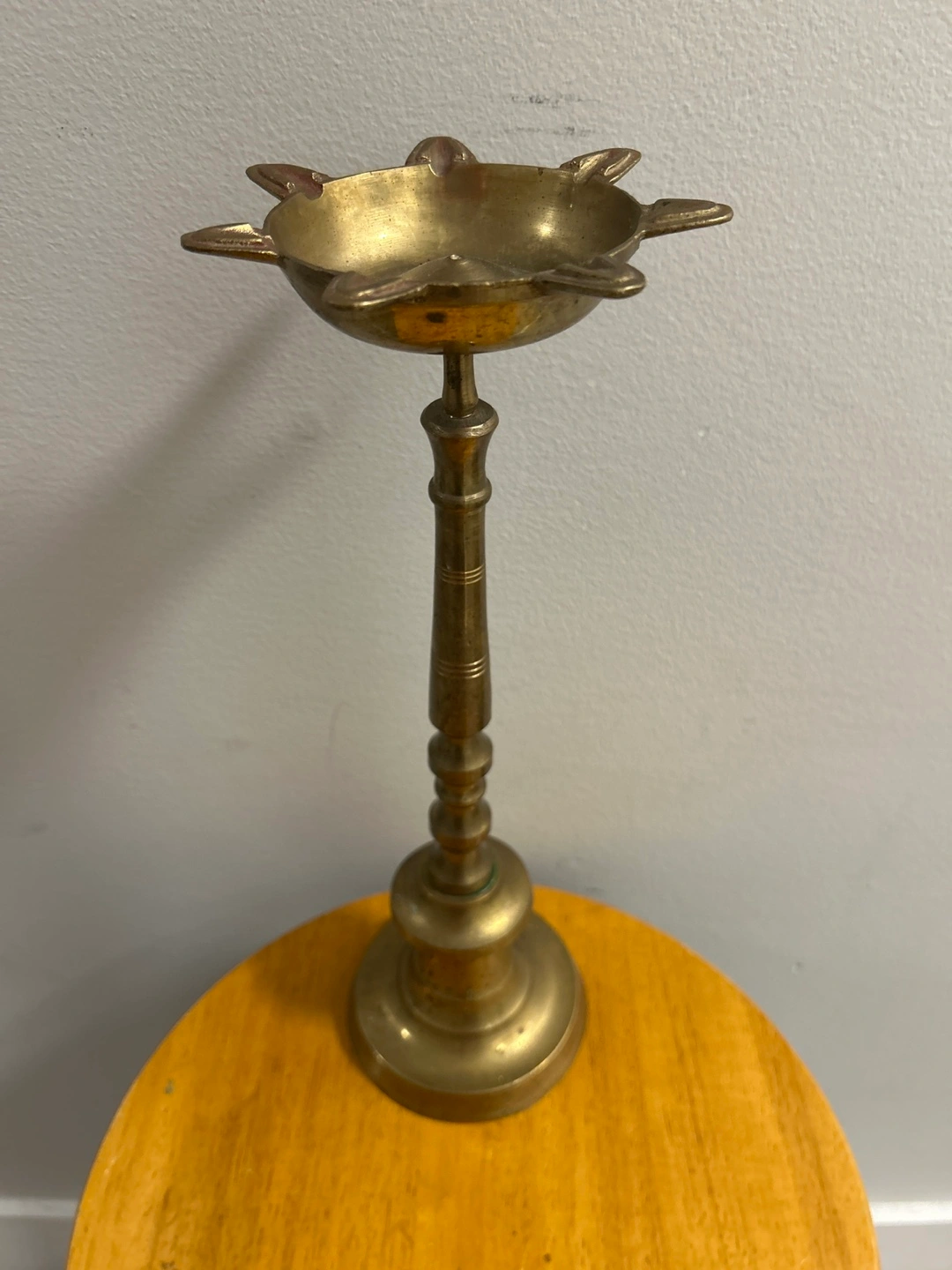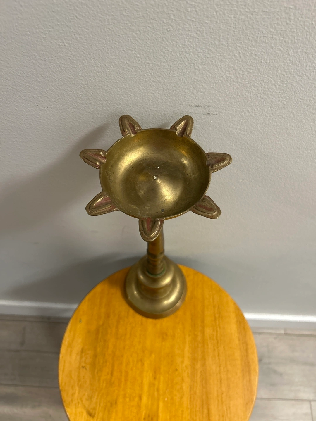 Selling a vintage brass oil lamp. It has a unique star-shaped top and a beautiful patina. Perfect for adding a touch of vintage charm to your home!