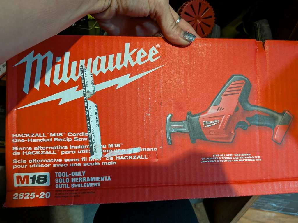 Selling a Milwaukee M18 Hackzall cordless one-handed reciprocating saw. This is the tool-only version, model 2625-20. It's designed to fit all M18 batteries. Printed date is 2025 July 07