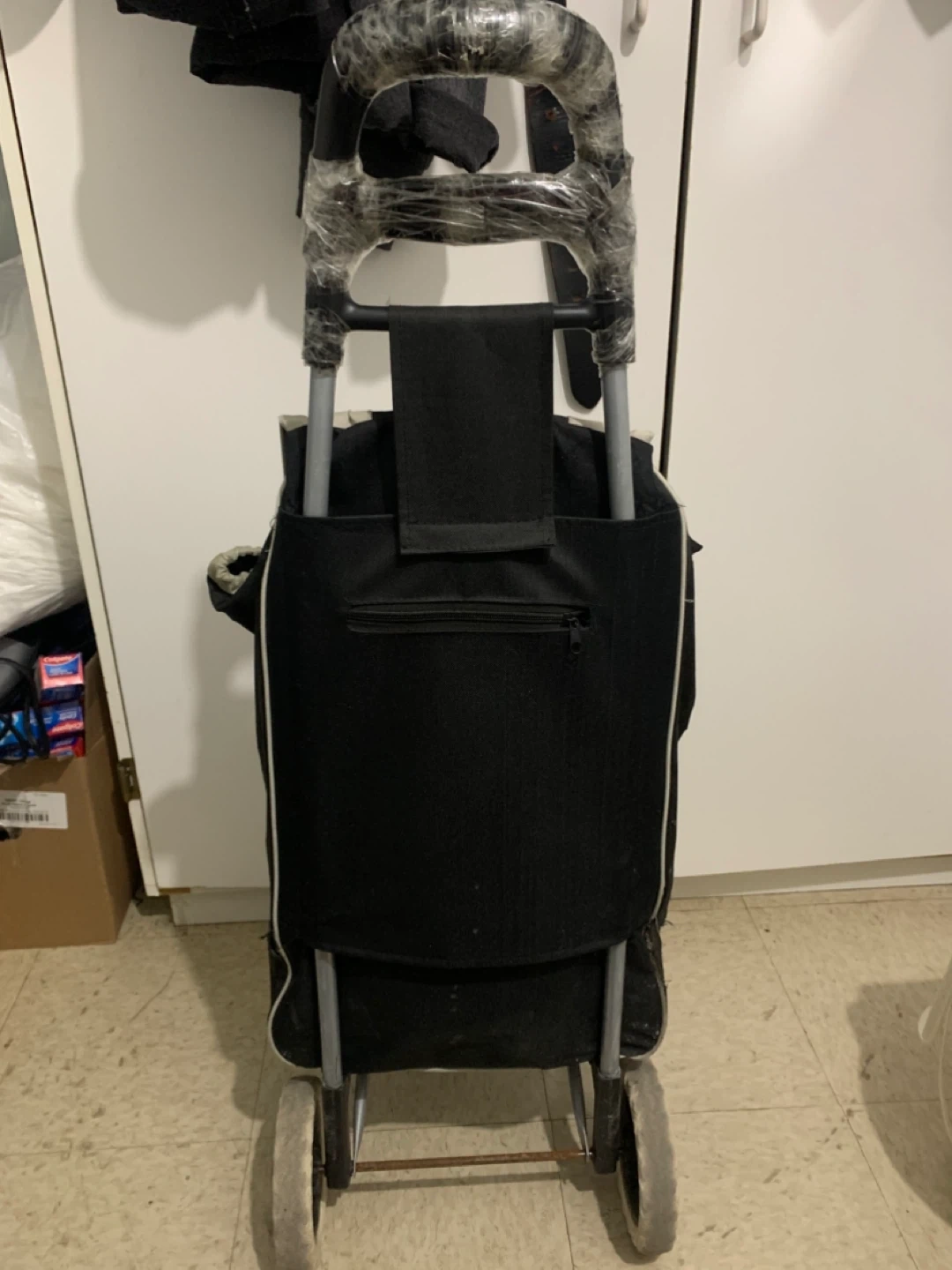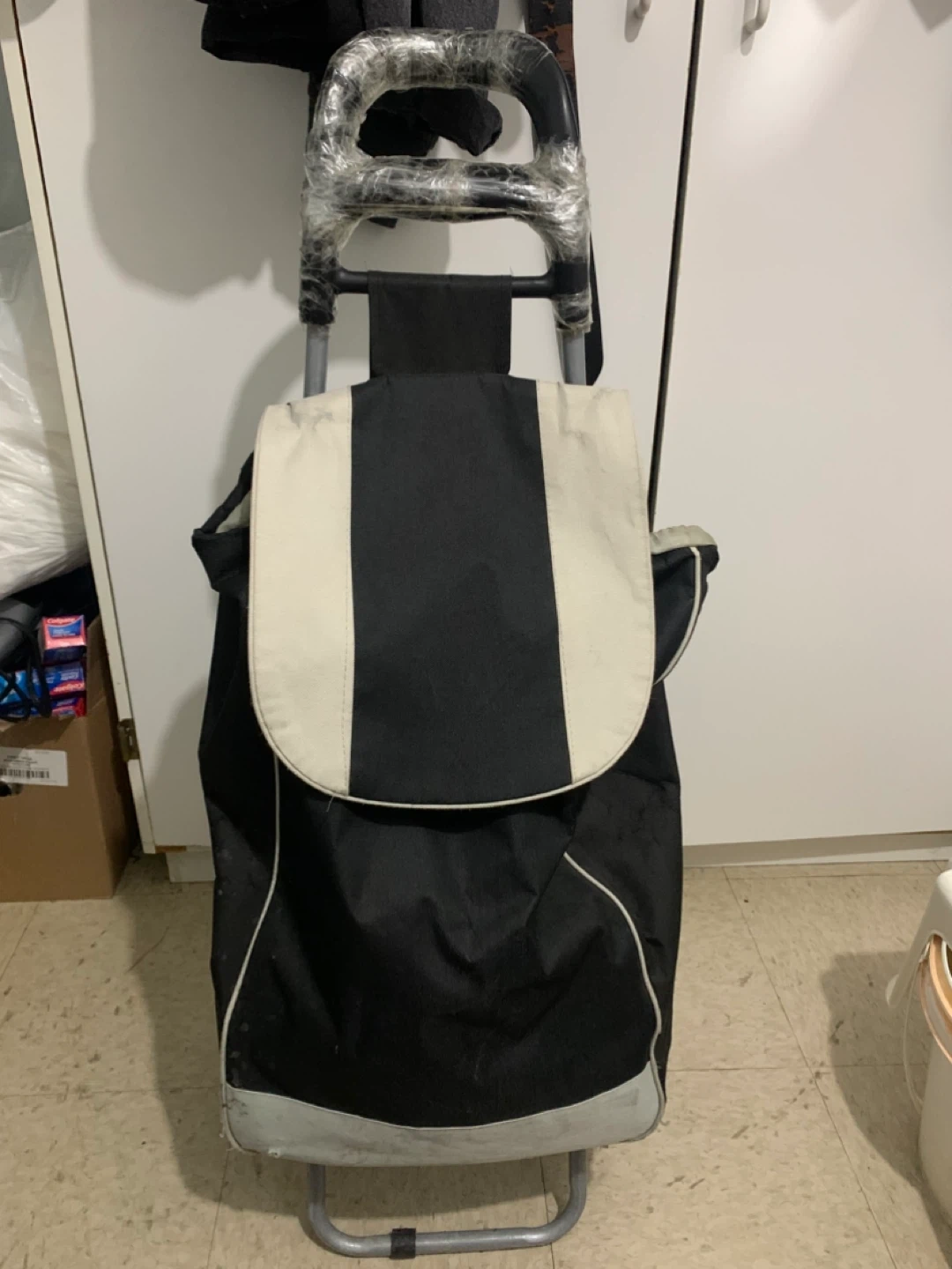 Selling a black shopping cart! It's in good condition and ready to help with your grocery runs or trips to the market. The cart has a sturdy frame and smooth-rolling wheels, making it easy to maneuver. Perfect for carrying groceries, laundry, or other items. Great for anyone who wants to make shopping easier