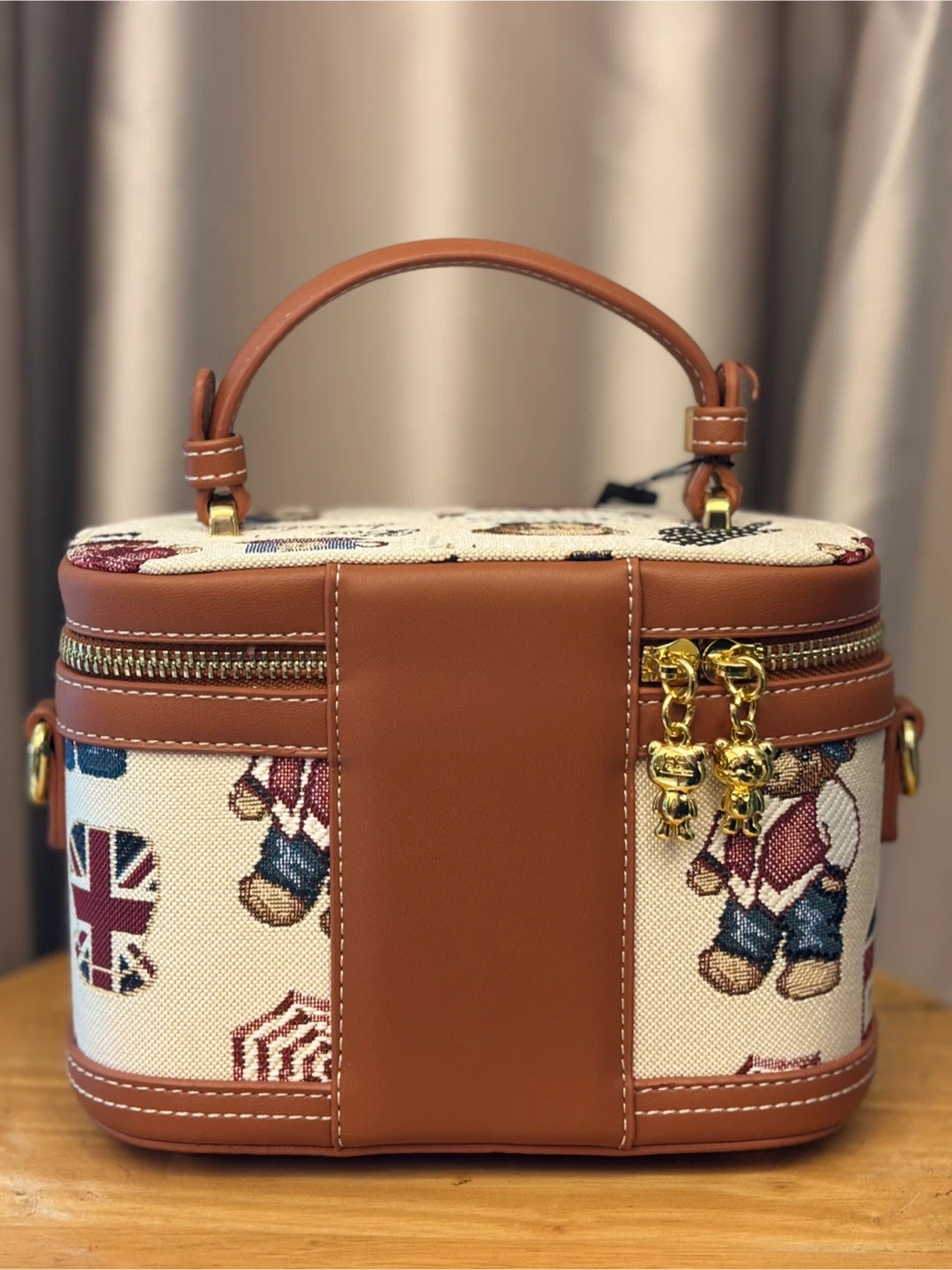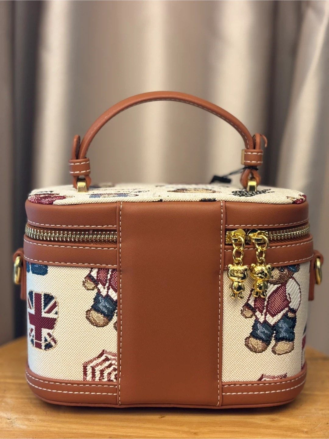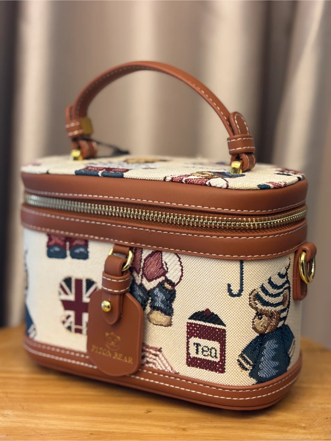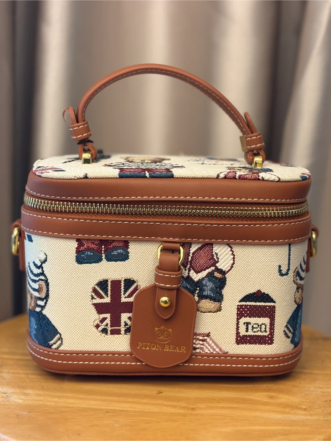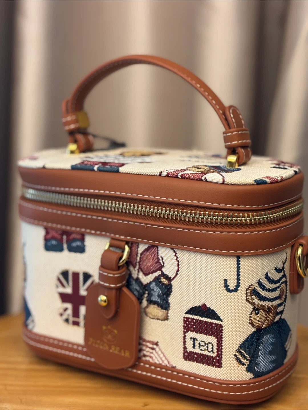 Super cute Piton Bear handbag! It's in great condition and features a unique design with bears and British flags. The bag has a handle and a zipper closure. Perfect for adding a touch of whimsy to your outfit