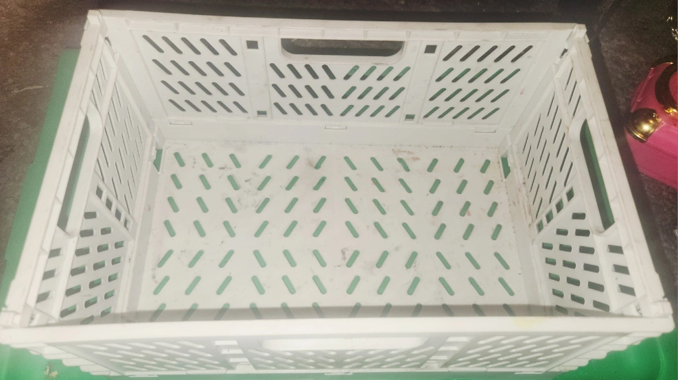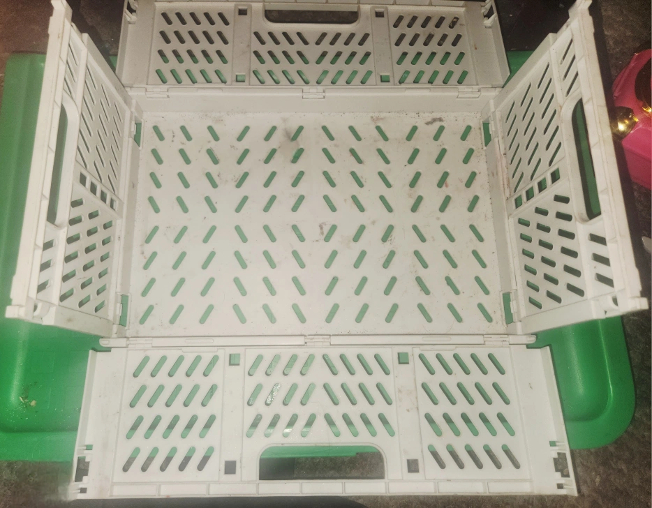 Selling a collapsible storage crate! It's in good condition and perfect for organizing your things. The crate folds down for easy storage when not in use. Great for decluttering your space! Pick up only.