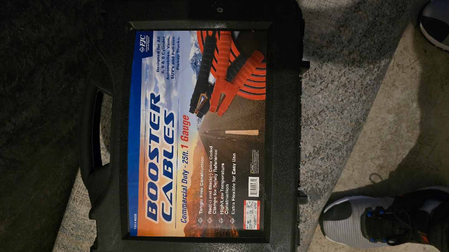 I have a set of heavy duty Booster Cables for sale. They are 25 feet in length and 1 gauge. They are designed for all 4, 6, & 8 Cylinder SUV's and Full-Size Pickup Trucks. They also have a tangle free construction and red(+) and Black(-) color coded cables. High/Low Temperature resistance and extra flexible for easy use