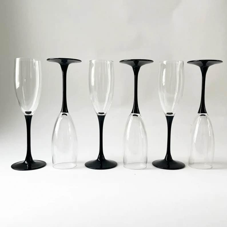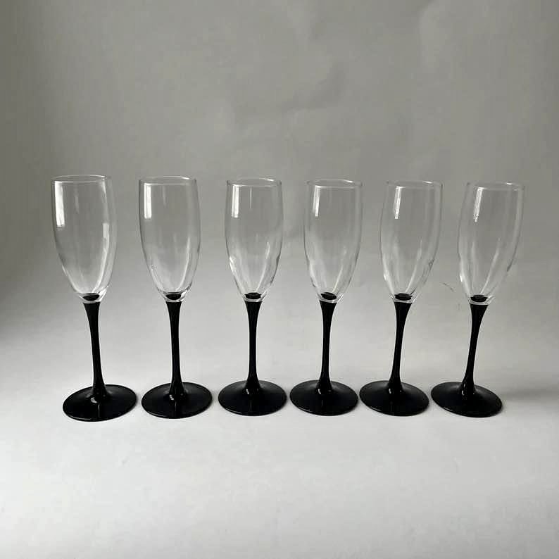 10 x Black stem champagne glasses