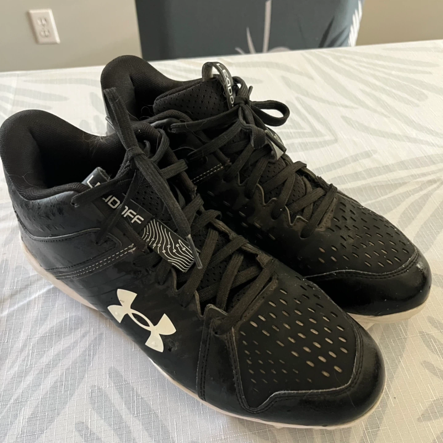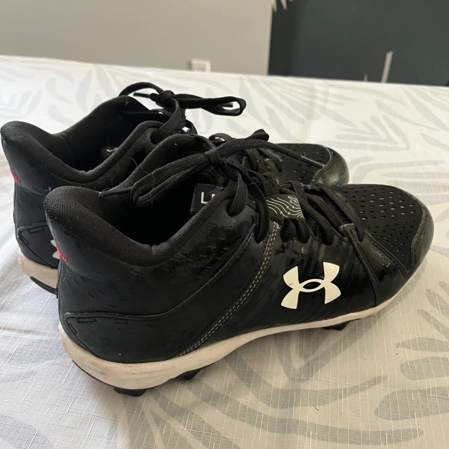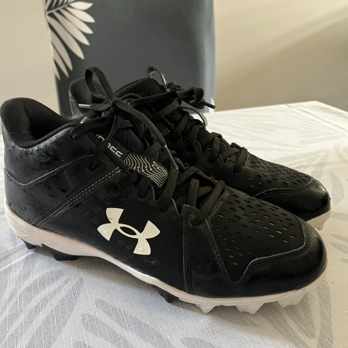 Selling a pair of Under Armour Leadoff RM Jr baseball cleats in black. They're in excellent condition and ready for the next game!