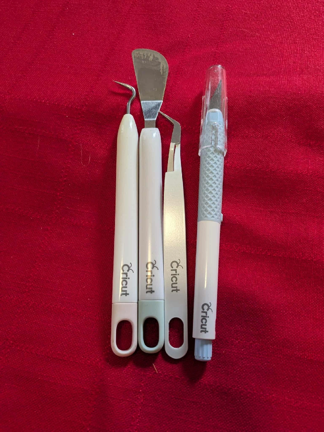 Selling a Cricut weeding tool set! This set includes a weeding tool, tweezers, a spatula, and a scraper. Great for all your crafting needs!
