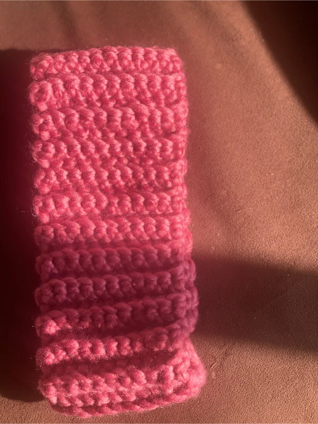 Selling a cute, handmade crochet headband! It's a lovely shade of pink and would be a cozy addition to any outfit. Perfect for keeping your hair back or just adding a pop of colour to your look