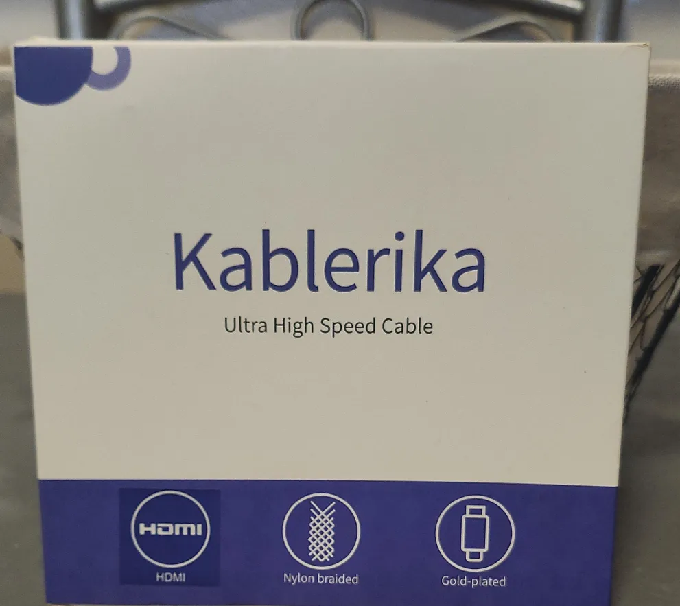 Kablerika 4K Ultra High Speed Cable! It supports 4K resolution for crisp and stable image quality with no screen flicker. The cable is made with durable, braided nylon for extra strength and is plug and play, driver-free. The box is included