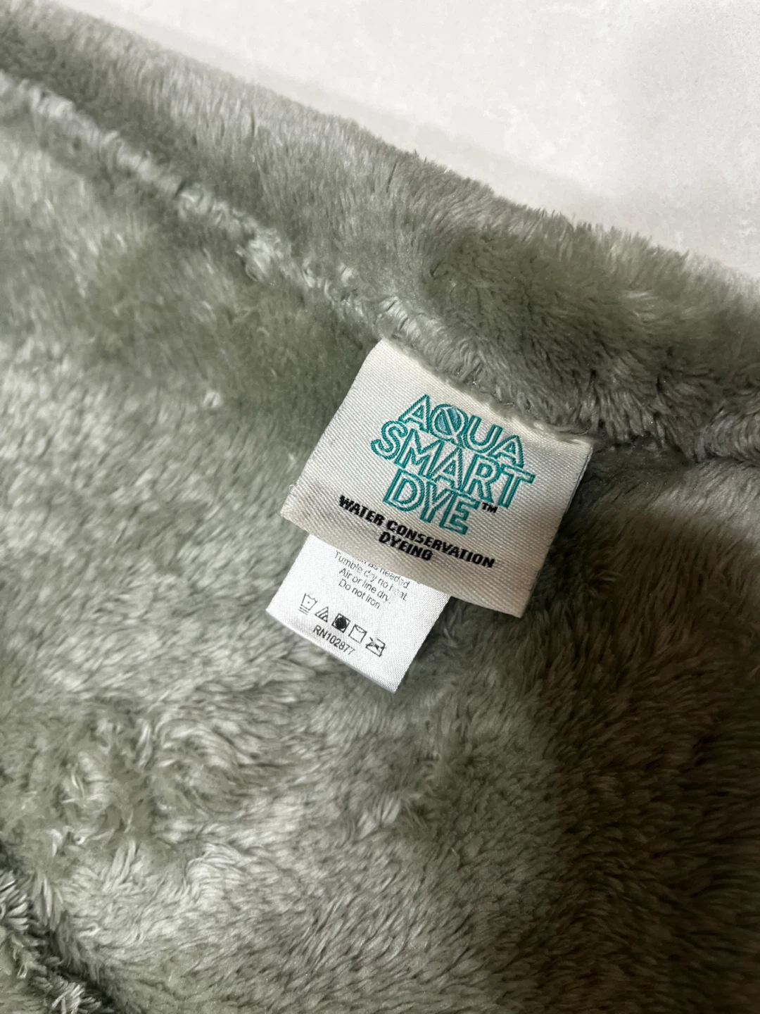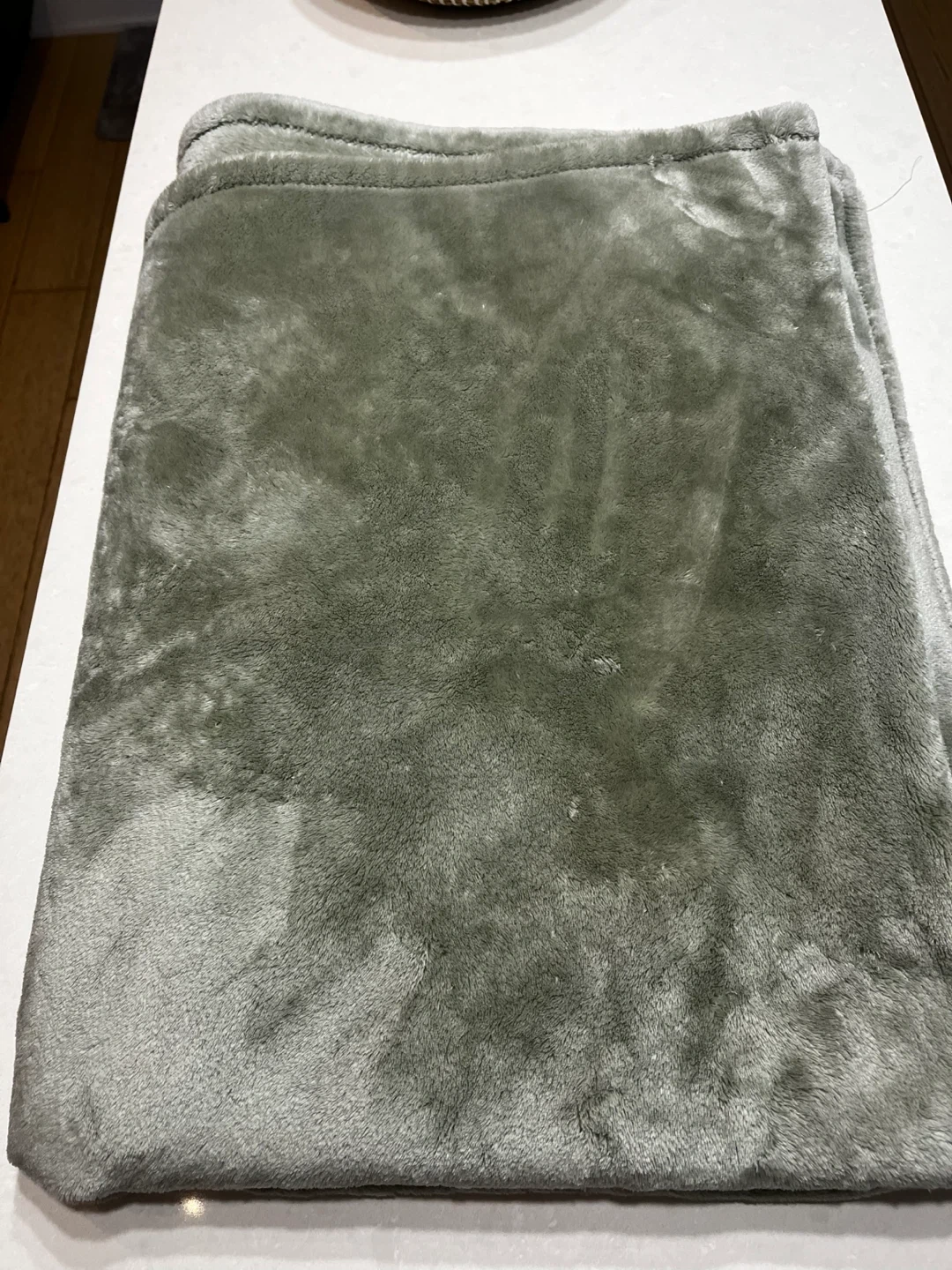 This is a like new blanket from Aqua Smart Dye, featuring their water conservation dyeing process! It's a cozy and soft blanket in a neutral sage colour, perfect for snuggling up on the couch 118x190cm
