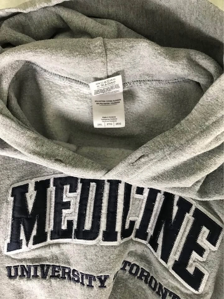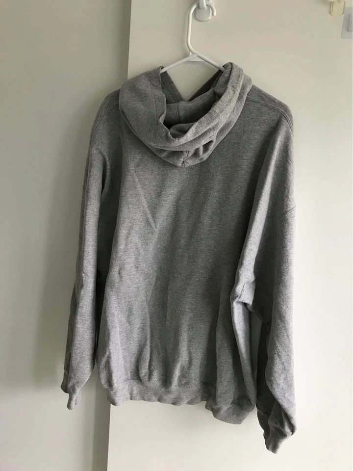 Got some good use out of it. Missing the string for the hoodie part. No stains.