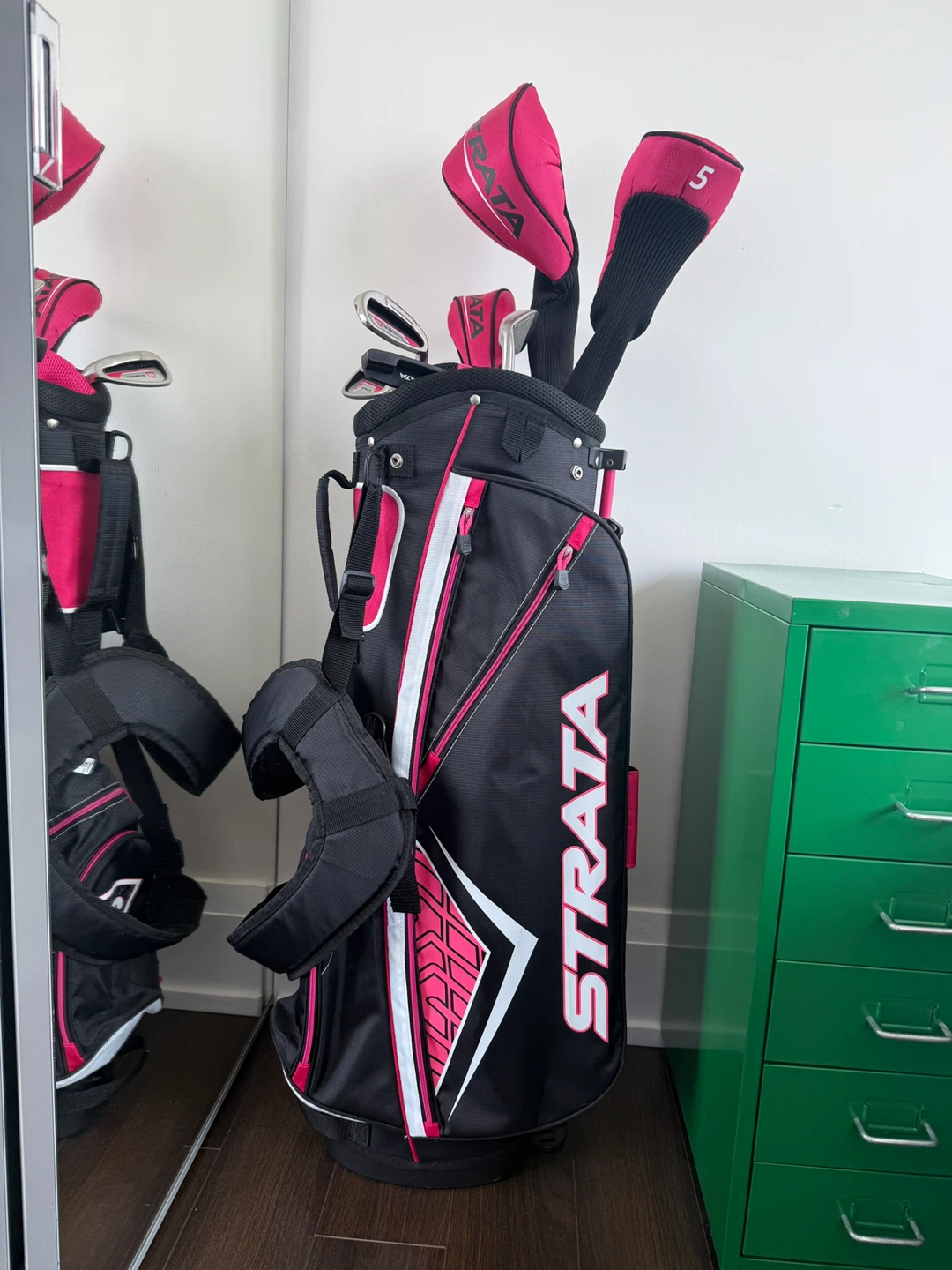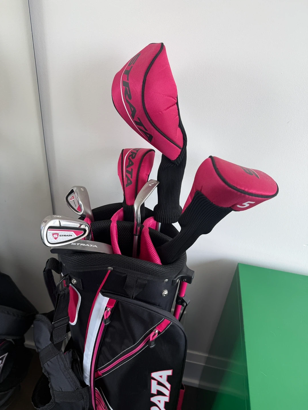 Selling a Strata women's golf club set in great condition! This set comes with a variety of clubs and matching head covers, all in a stylish black and pink design. Perfect for beginner golfers or anyone looking to upgrade their equipment. Ready for a new home!