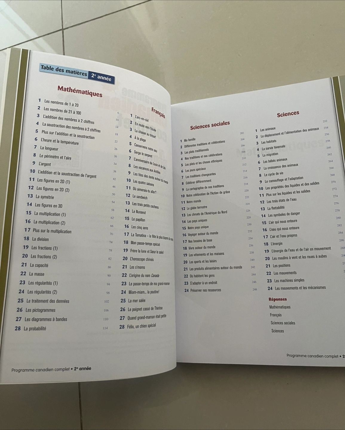 Brand new. It covers mathématiques, français, sciences sociales, and sciences. Perfect for students in French immersion!