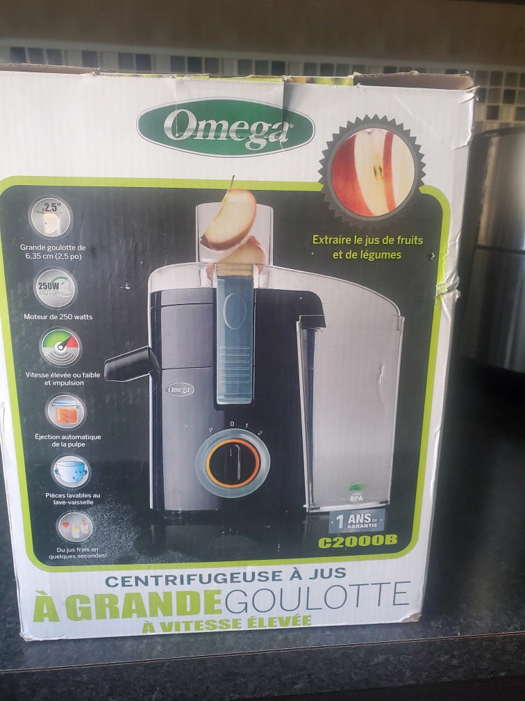Selling an Omega Large Chute Centrifugal Juicer, model C2000B! It's new, never used and comes with the original box and manual