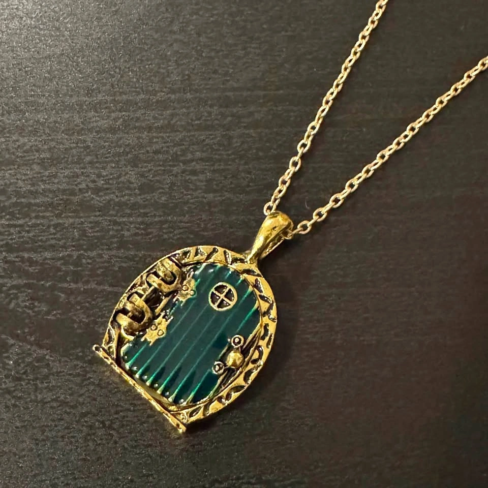 262Add this ornate green hobbit door locket pendant in lovely gold tone metal to your fairycore jewelry collection. Adjustable chain and the locket has a magnetic closure. This would make a lovely gift to a fan of the ‘Lord of the Rings’, ‘Hobbit’ books/films. This item is brand new, unused and is stored in a pet free home. Tags: Floral, Flower, Plants, Leafy, Vine, Boho, Bohemian, Vintage, Metallic, Antique Gold Tone, Aged Gold, Bronze, Engraved, Intricate, Detailed, Filigree, Etched, Embossed, Cottagecore, Statement Pendant, Elf, Elves, Magical, Magic, Lord of the Rings, Fairy Door, Hobbits, Botanical, Garden Door, Fairy, Fairycore, Fairies, Fae, Arwen, Samwise Gamgee, Frodo Baggins, Bilbo Baggins, Galdalf, Ornate Door, LOTR🧙🏻♀️