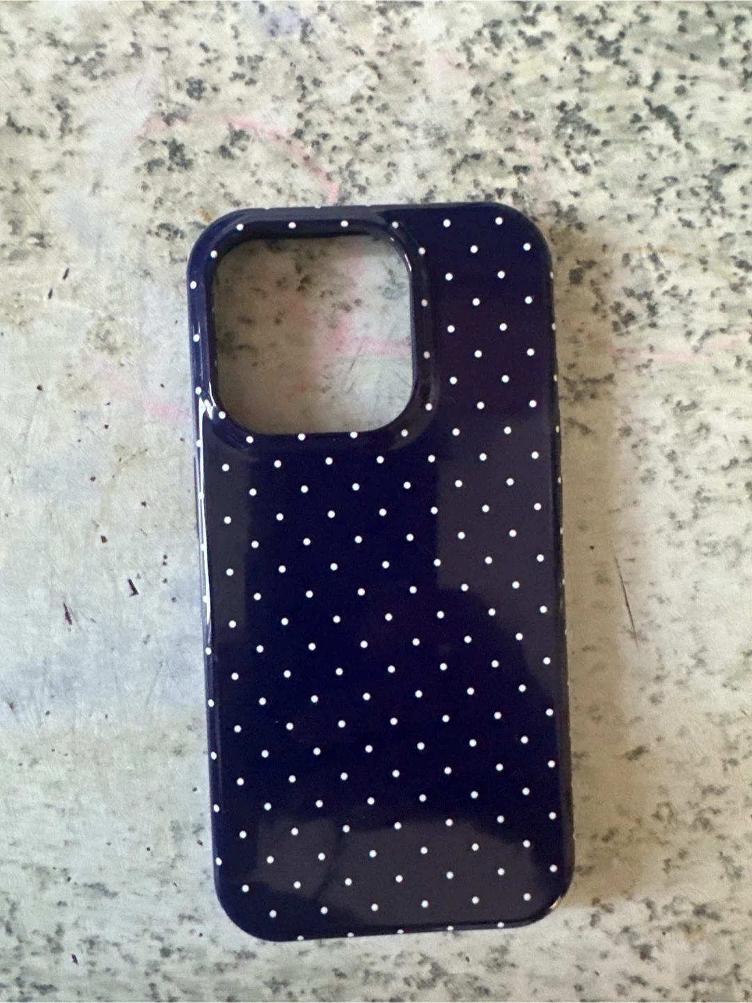 Selling a cute Kate Spade iPhone 13 Pro case! It's a navy blue case with white polka dots. It's in great condition and ready for a new home