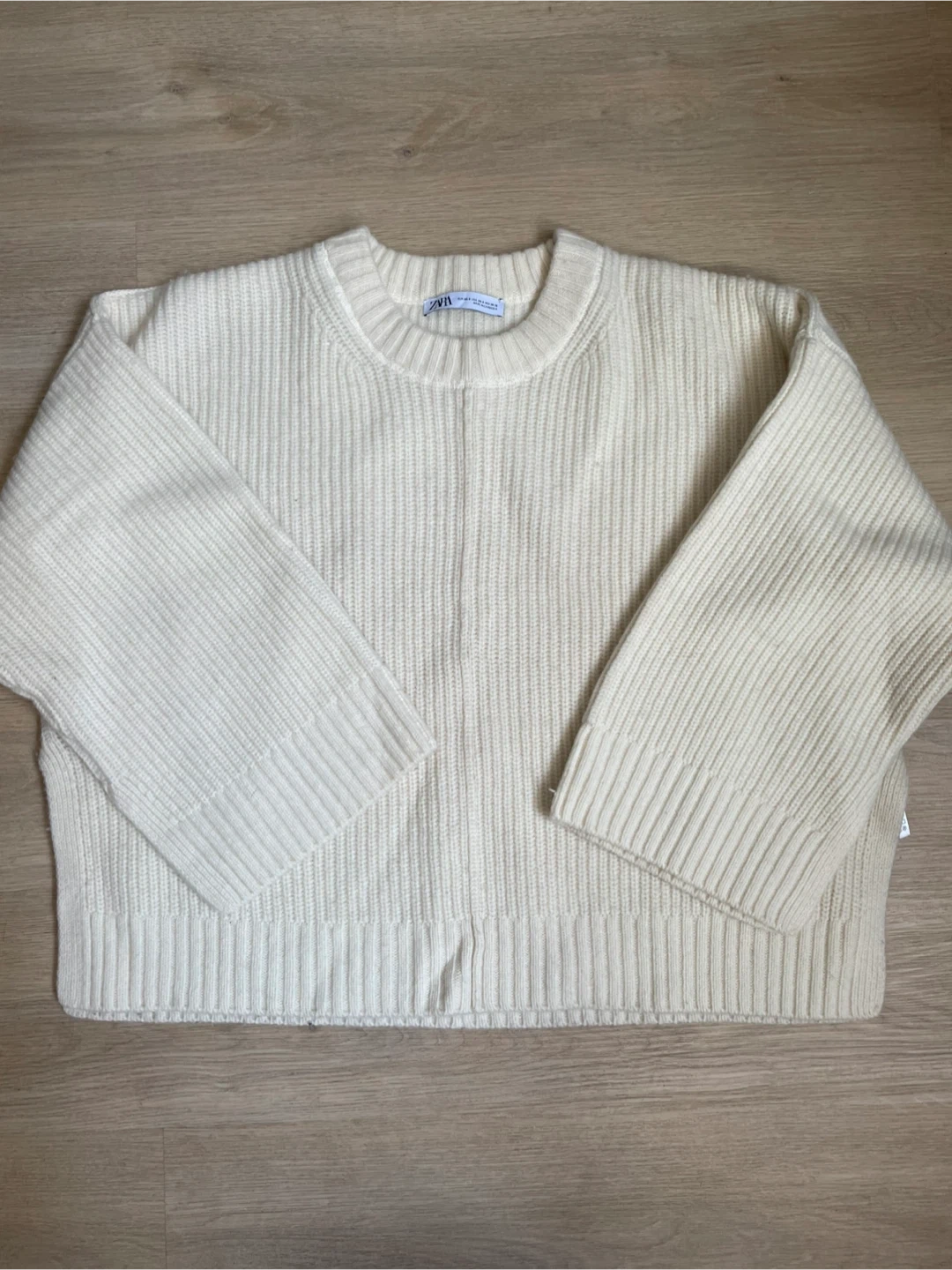 Cozy Zara knit sweater in a lovely cream colour. Worn only a few times, no damage. It's a size XS but fits very oversized. Perfect for Fall/winter!