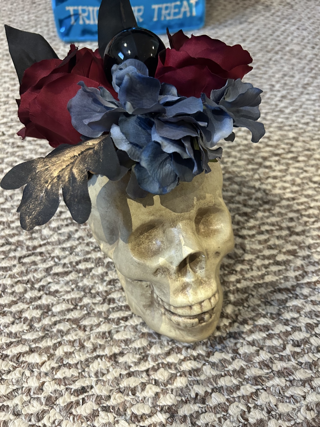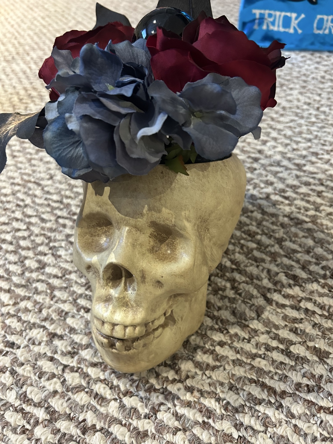 Halloween decor- skull vase with flowers! Perfect for Halloween or any time you want to add a touch of spooky fun to your decor