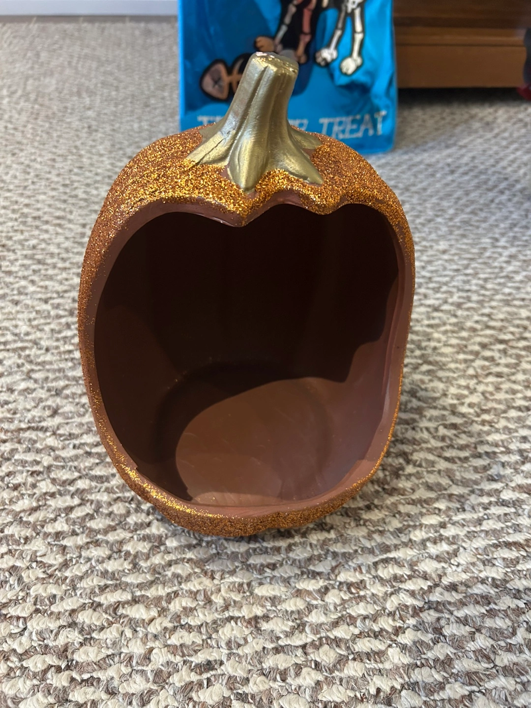 Selling a cute glittery pumpkin candy bowl! Perfect for Halloween or fall decorations. It's in great condition and ready for a new home