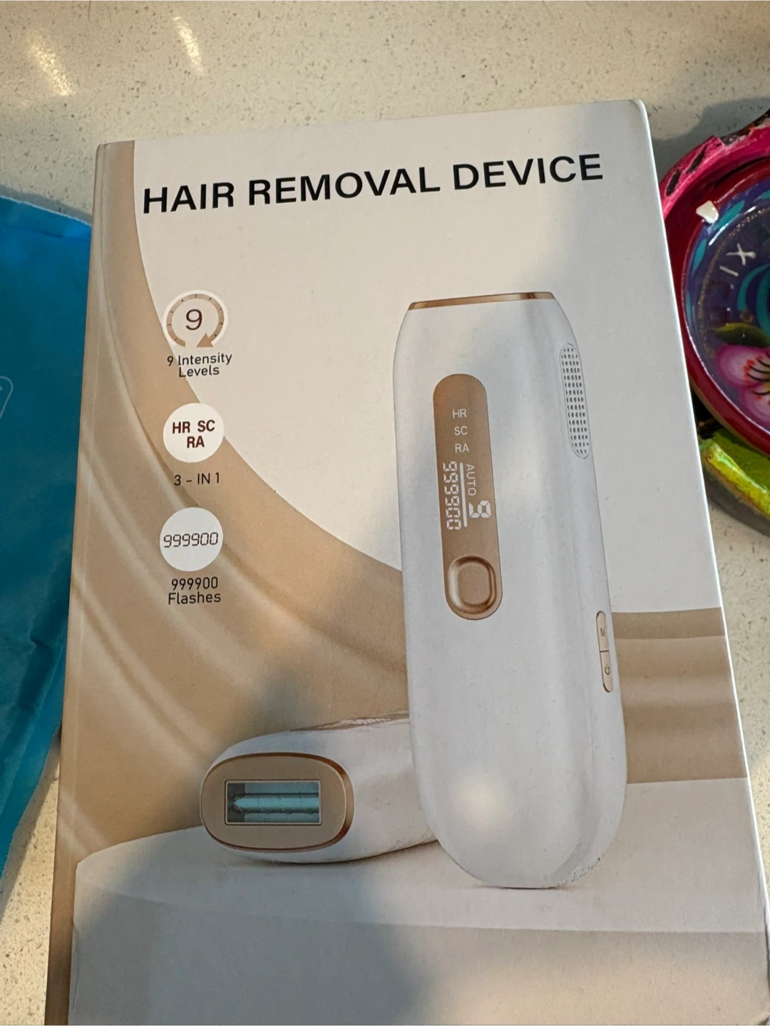 I'm selling a brand new hair removal device. It comes with 9 intensity levels and boasts 999900 flashes for long-lasting use. The device is also 3-in-1, making it a versatile addition to your beauty routine. Included in the box are the device, charger, and a razor.