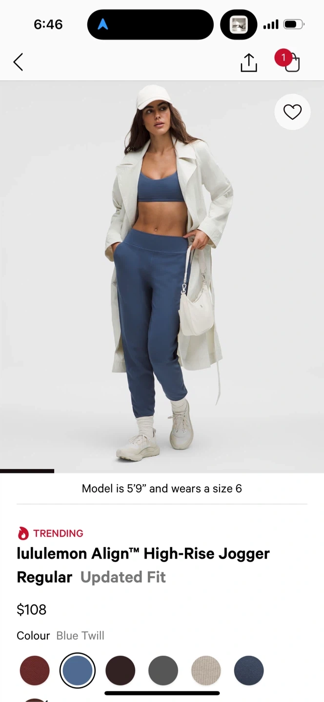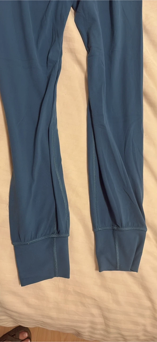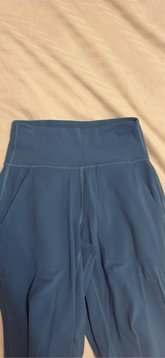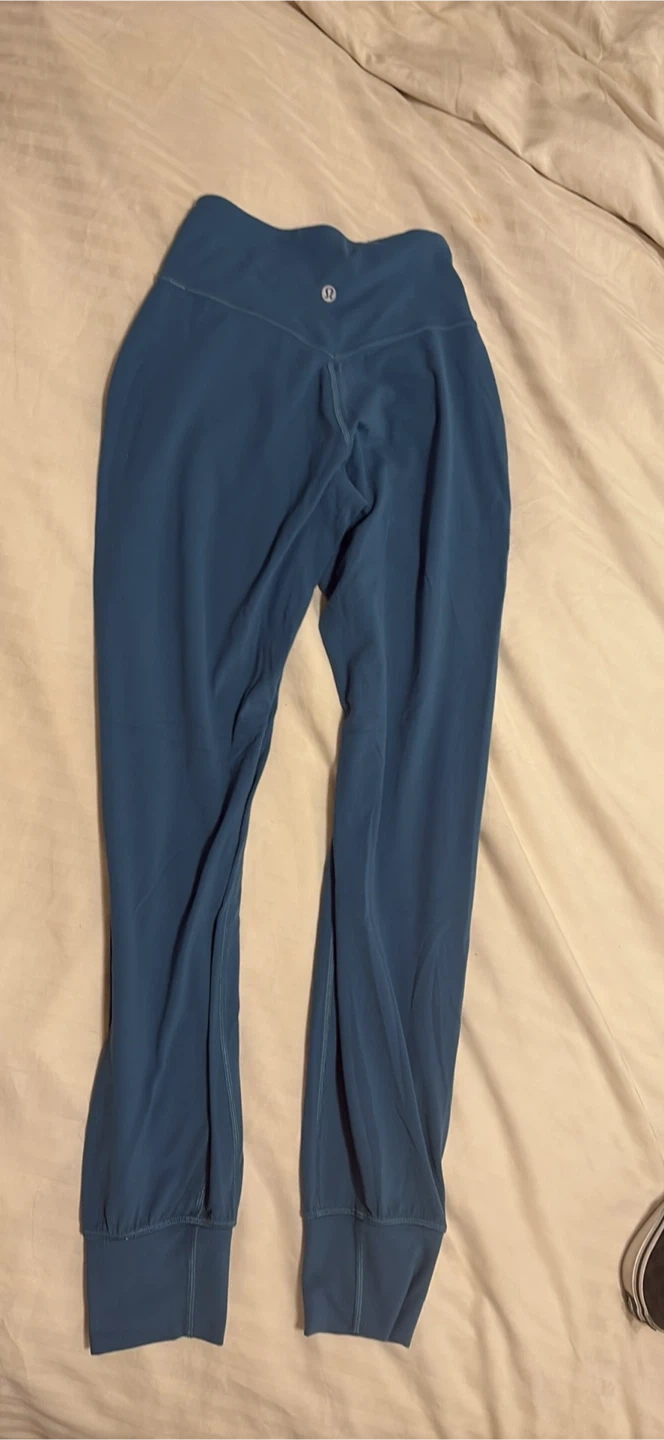 Selling a pair of Lululemon Align High-Rise Joggers in the Blue Twill colour! These are a size 6 and in great condition. They're super comfy and perfect for lounging or working out. The model in the screenshot is 5'9" and wears a size 6 for reference. Originally bought for $108