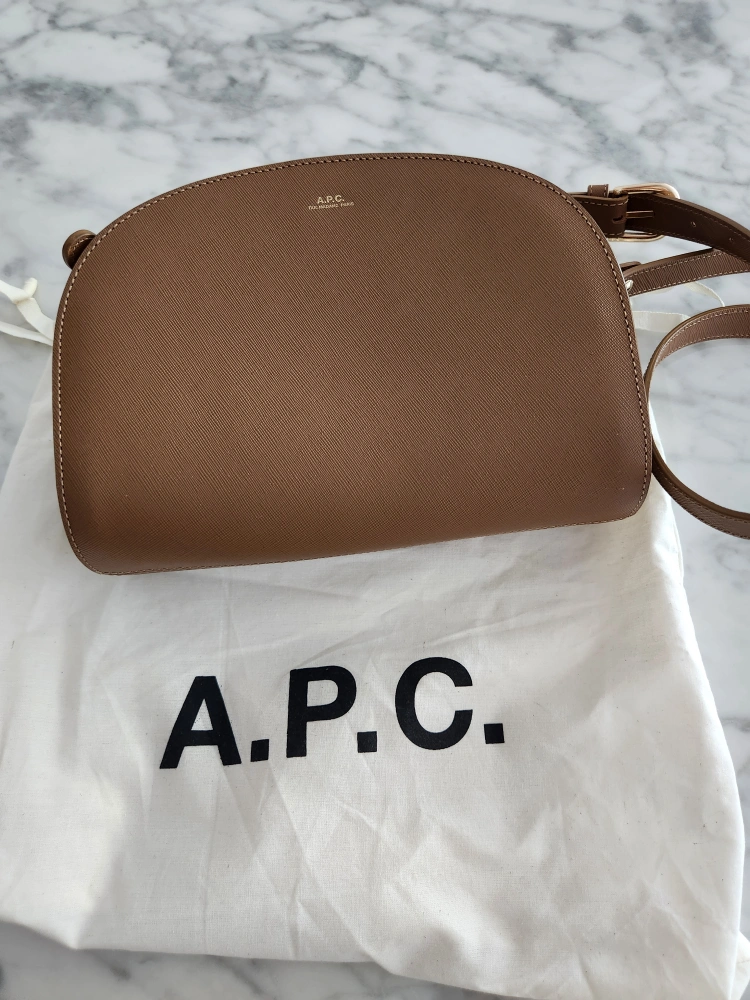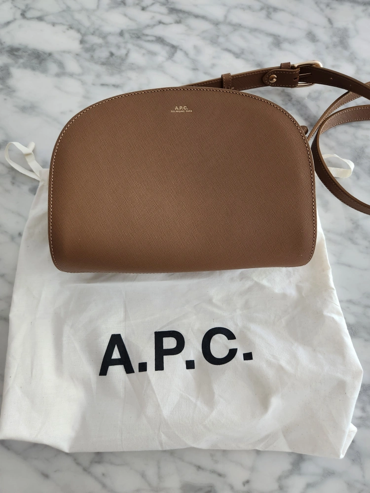Brand new A.P.C. Hafmoon crossbody bag in tan leather! It comes with its original dust bag. Purchased at regular price now selling for $362 CAD.