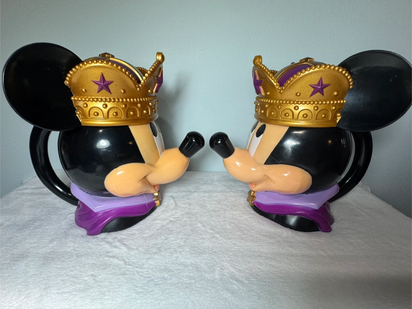 2 mugs Disney On Ice Flip Top Souvenir Mug Mickey Mouse (👑crown)