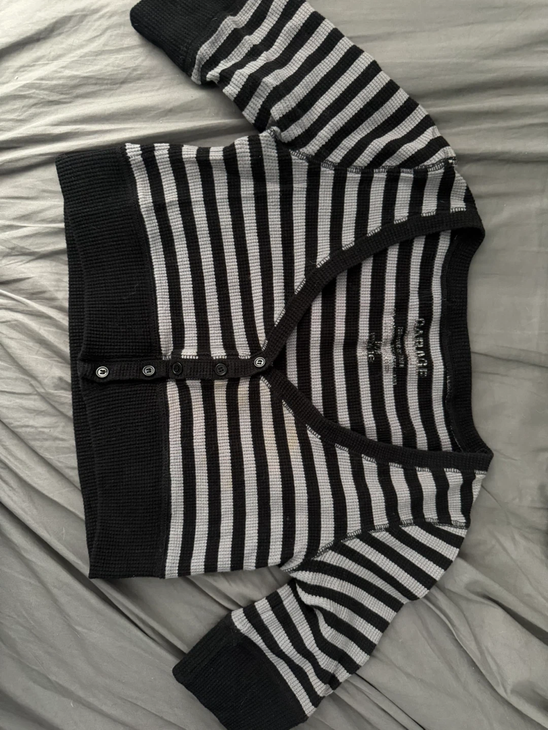 Selling a Garage striped cardigan. It's black and grey with a button-up front.
