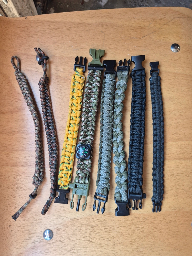 Selling a collection of paracord survival bracelets in various colours and styles. These are great for outdoor adventures or everyday wear. They're durable and can be unravelled for emergency situations. Get the whole set!