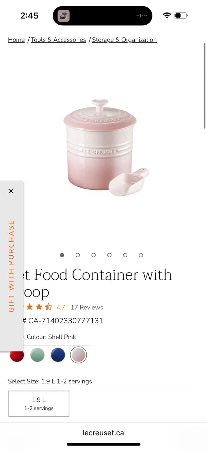 Selling a Le Creuset pet food container with a scoop! It's a lovely shell pink colour and holds 1.9L,brand new I bought this thinking I need 2. I never used this and kept in the box . Pick up only North York
