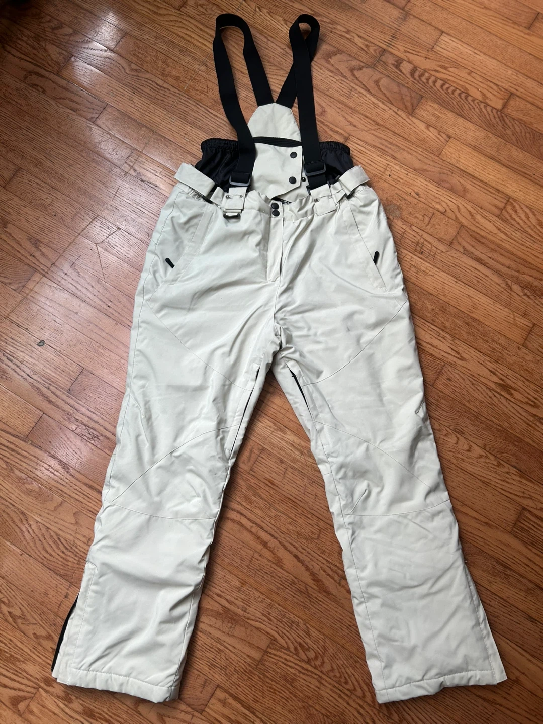 Selling a pair of Rivstyle ski pants with suspenders in excellent condition! These are a size small and perfect for hitting the slopes. They appear to be a light beige colour. Ready for a new owner!