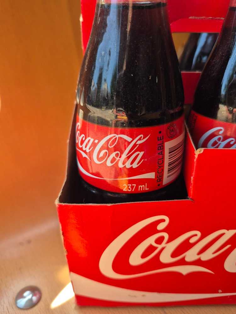 Selling a six-pack of Coca-Cola in the classic 237 mL bottles. collecter item, not to be consumed. vintage bottles.