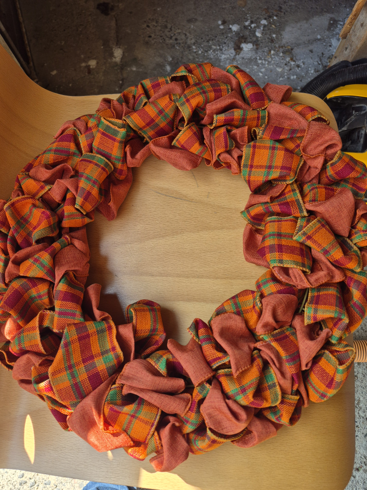 Check out this beautiful handmade fall wreath! It features a lovely plaid pattern in warm autumn colours, perfect for adding a cozy touch to your home this season