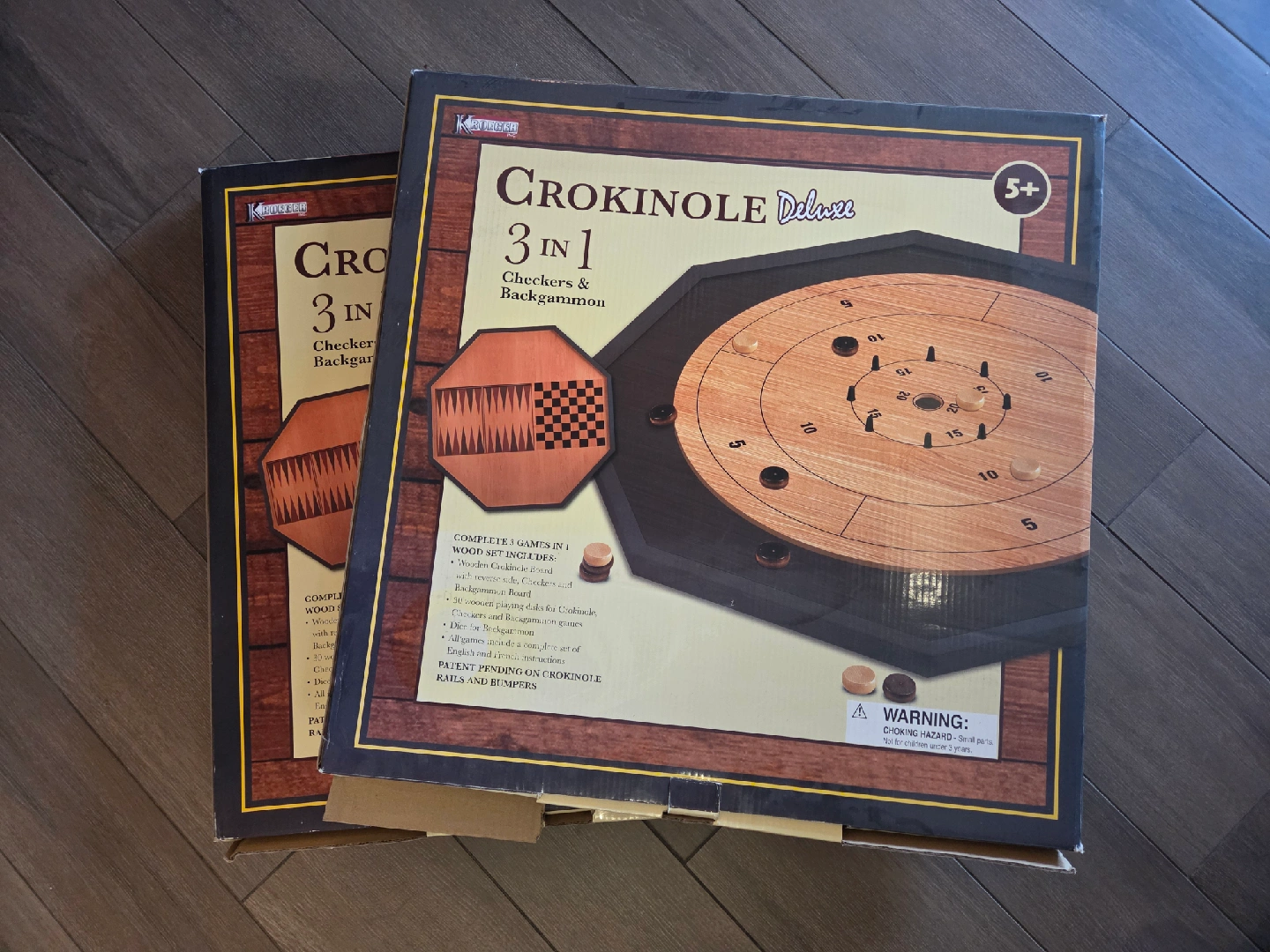 Crokinole Deluxe 3 in 1 Game - Checkers & Backgammon