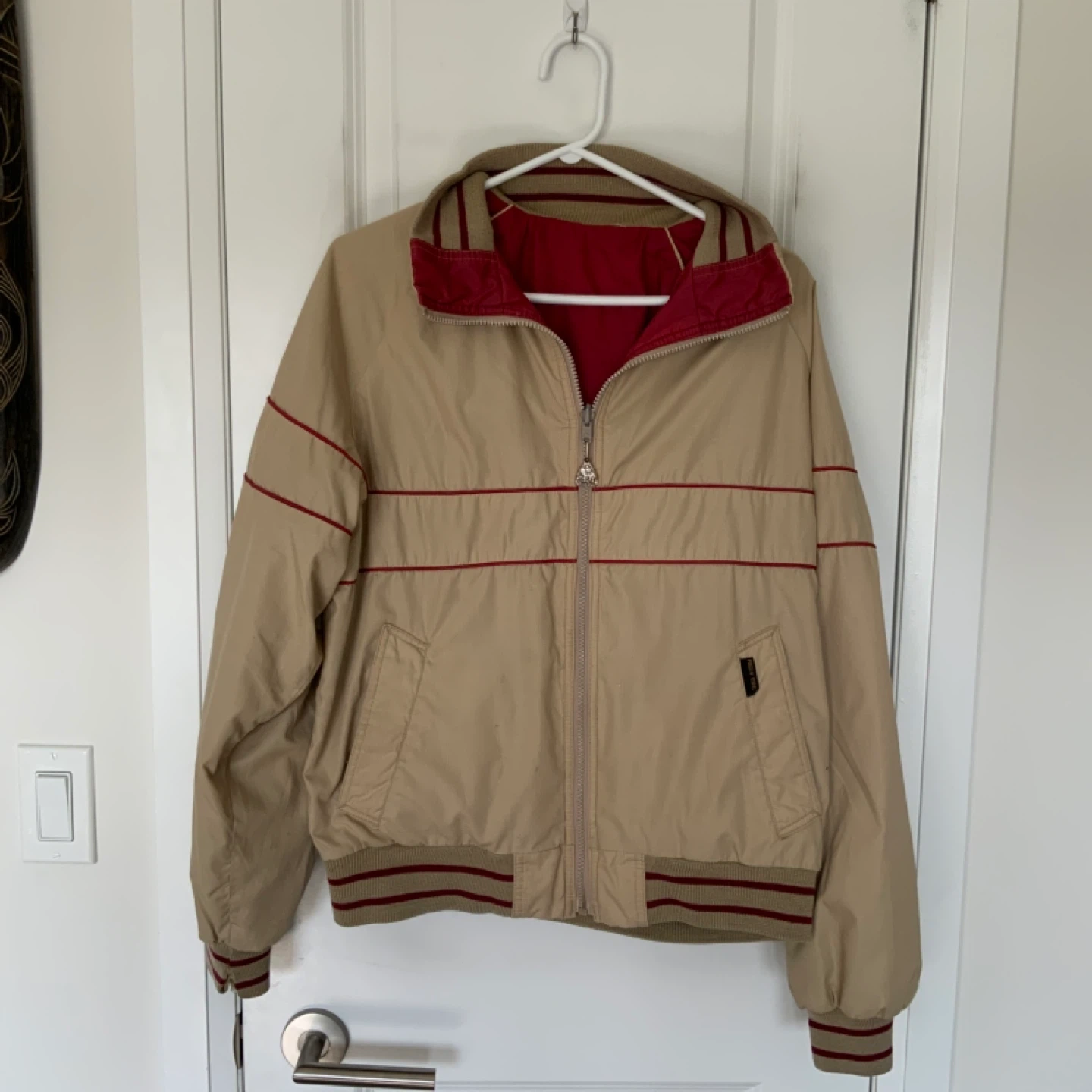 Here's a Pacific Trail jacket in beige with red accents. It’s reversible to for another look (red with beige accents). Great for layering during those transitional weather days.
