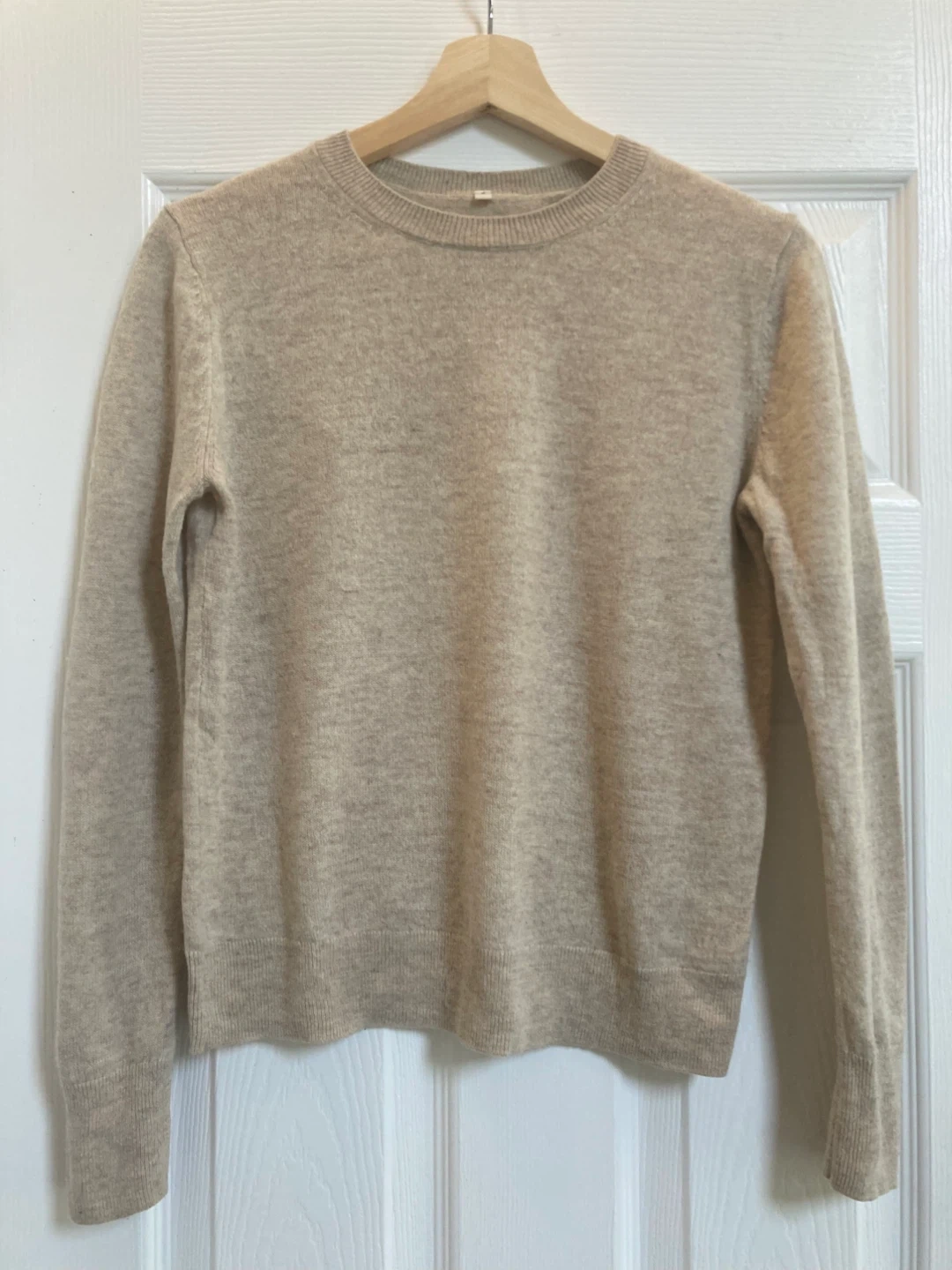 Muji sweater. Made of 70% wool and 30% yak hair/wool in speckled cream colour. It's soft and cozy. Classic style and colour. It’s clean and there’s no staining or damage.