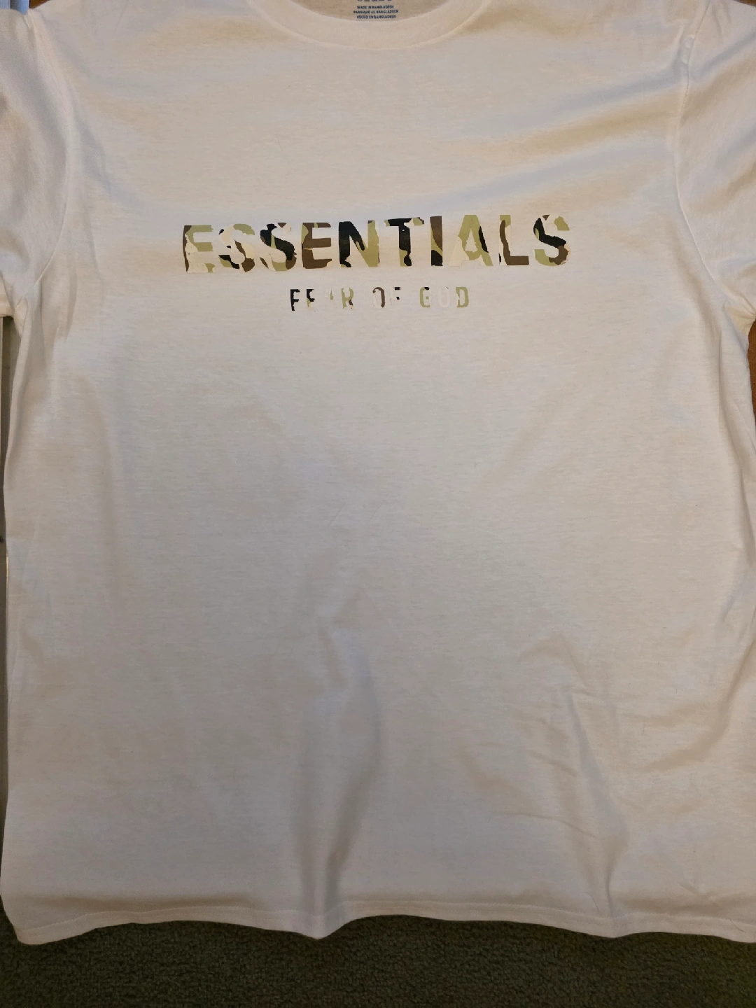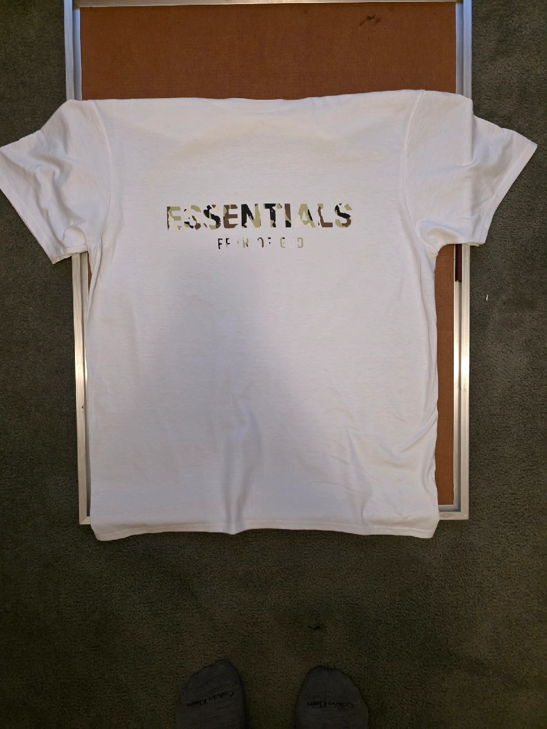 Selling two t-shirts: one is an Essentials Fear of God shirt, and the other is a Spider shirt. Both are in great condition and ready for a new home!