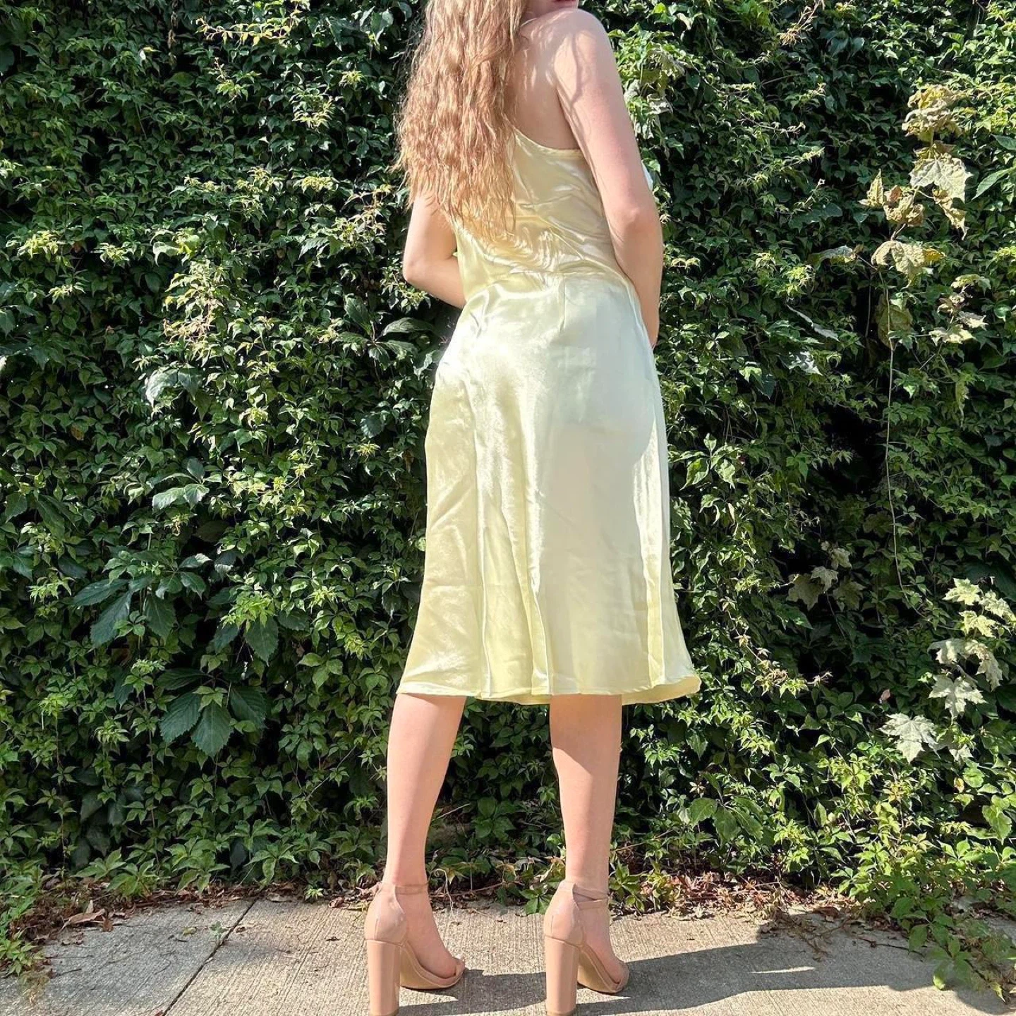 Yellow pink floral, asymmetrical dress, maxi length, slip dress, 90s style, vintage floral, pastel tones, boho chic, lightweight fabric, Jessica brand