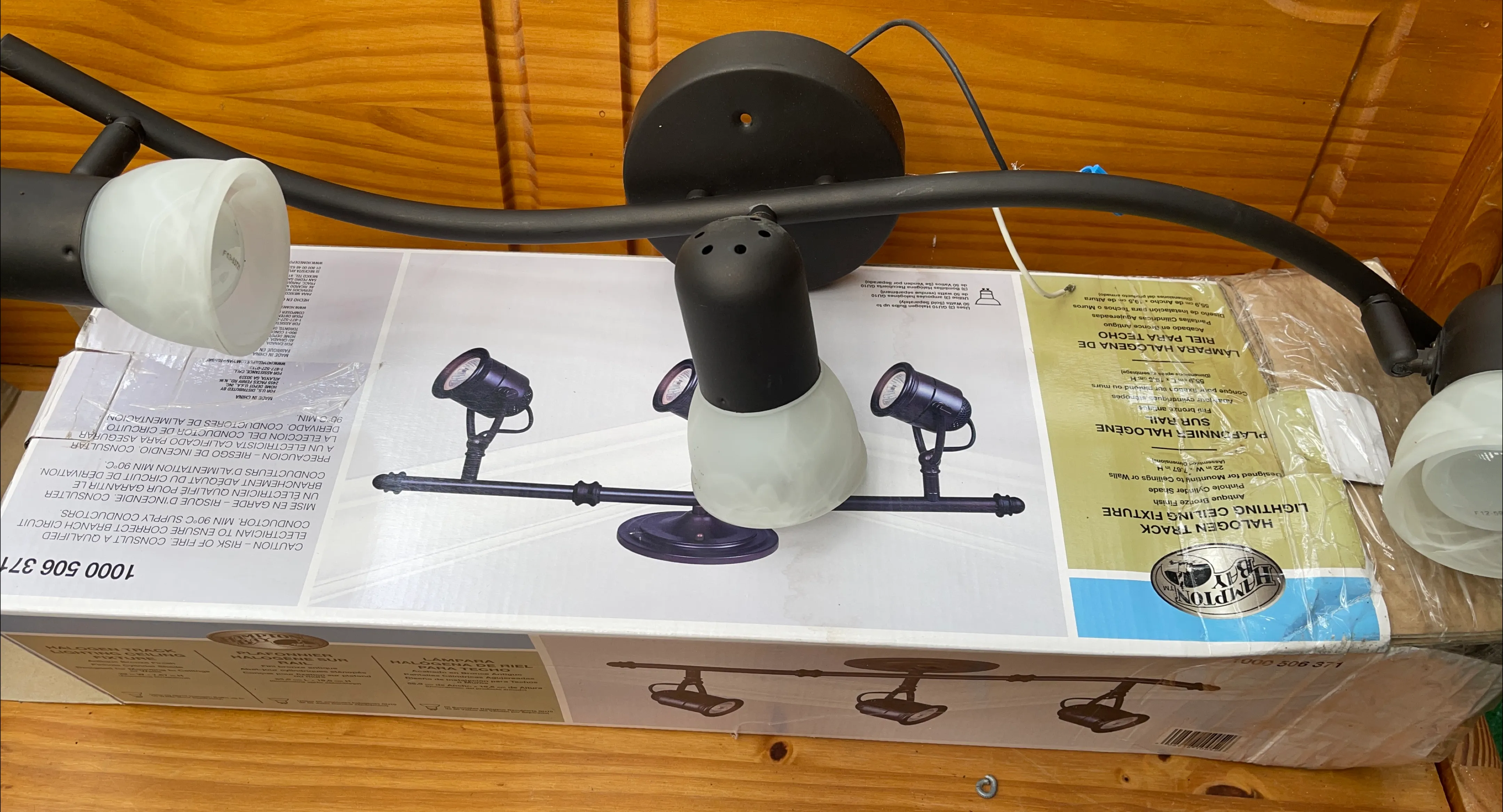 Selling a Hampton Bay halogen track lighting ceiling fixture. It comes with the original box and 3 bulbs.