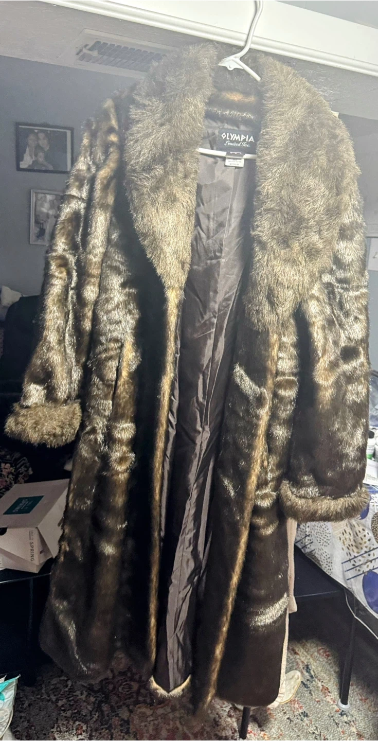 Selling a beautiful faux fur coat from Olympia Limited Inc. It's a size medium and features a stylish design. Perfect for adding a touch of elegance to your wardrobe!