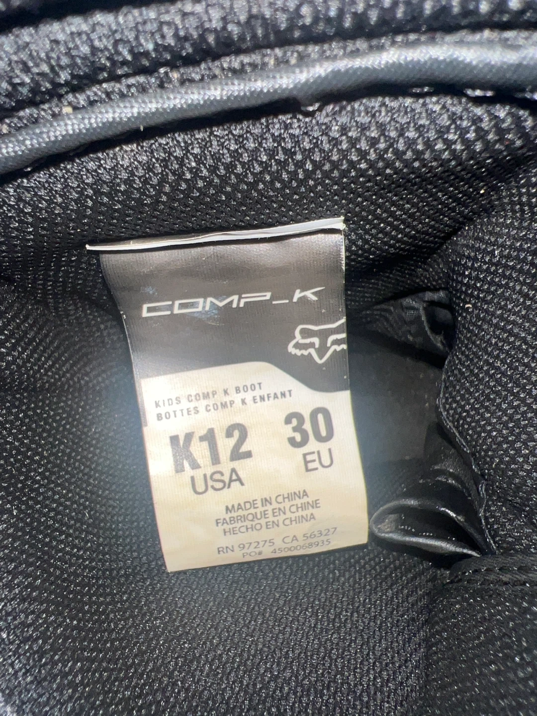 Selling a pair of Fox Comp K kids boots in size K12 (US). They're in good condition and ready for some action!